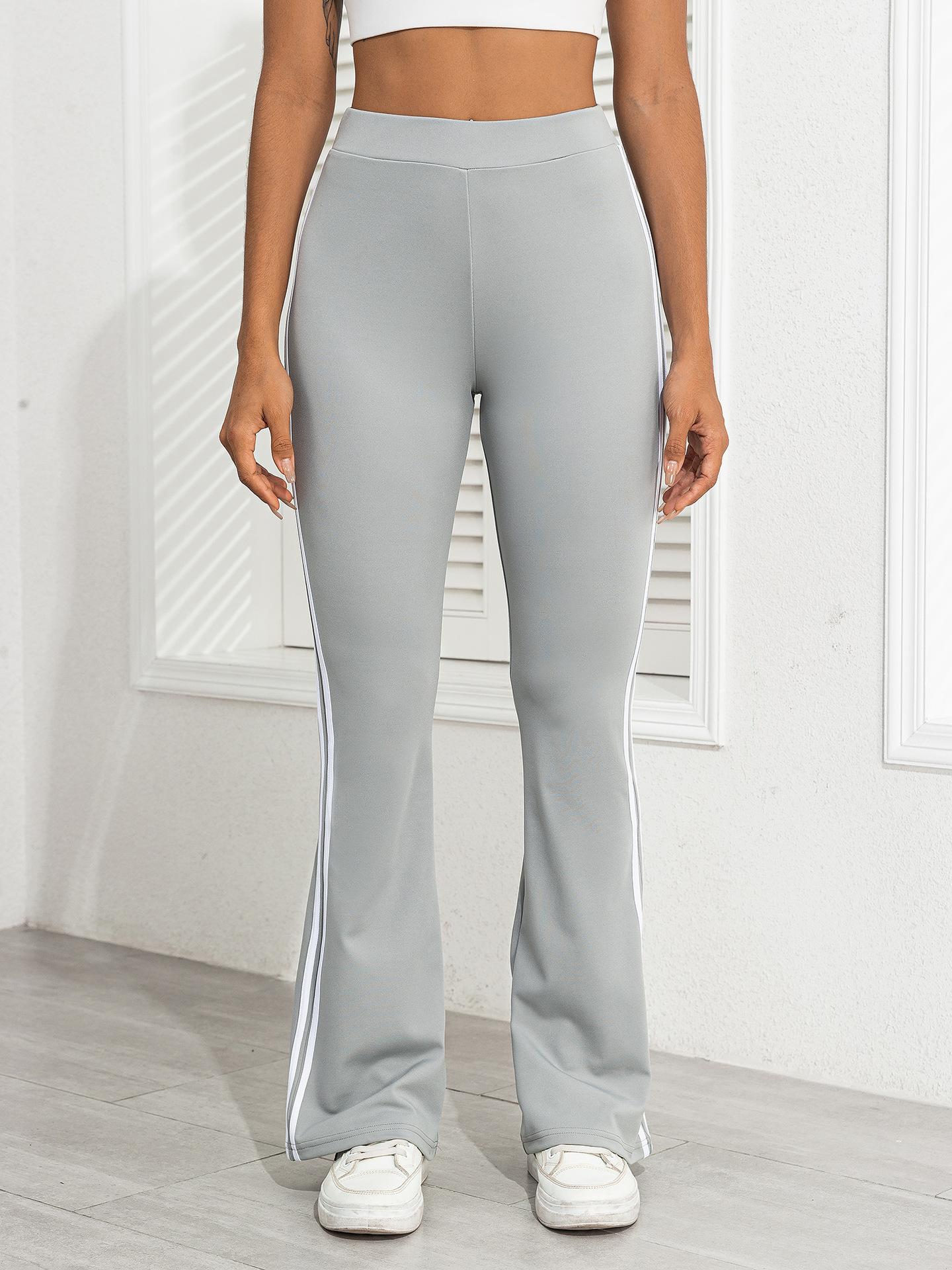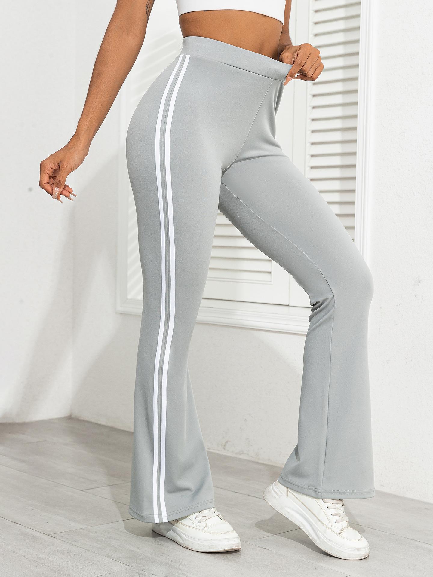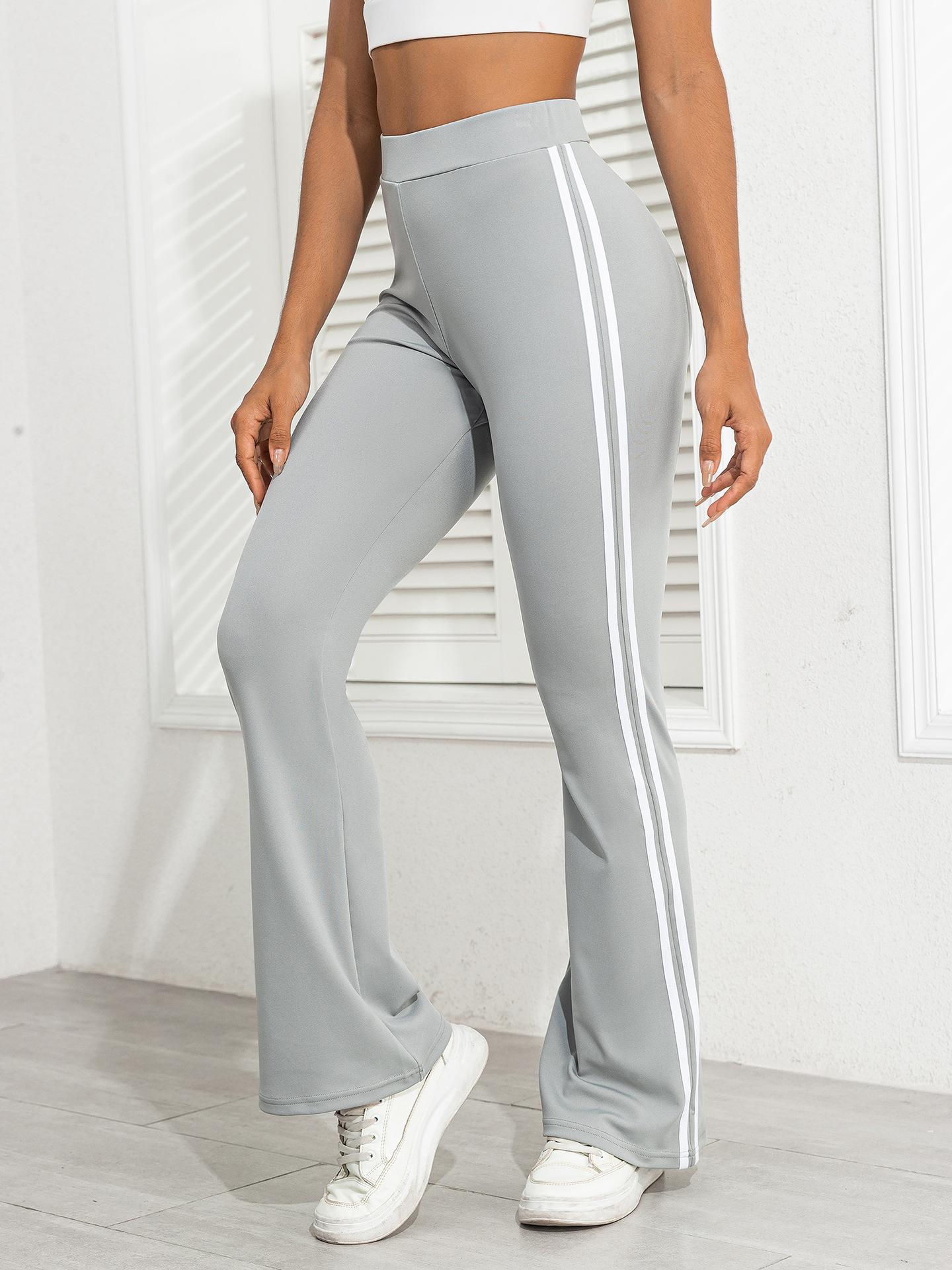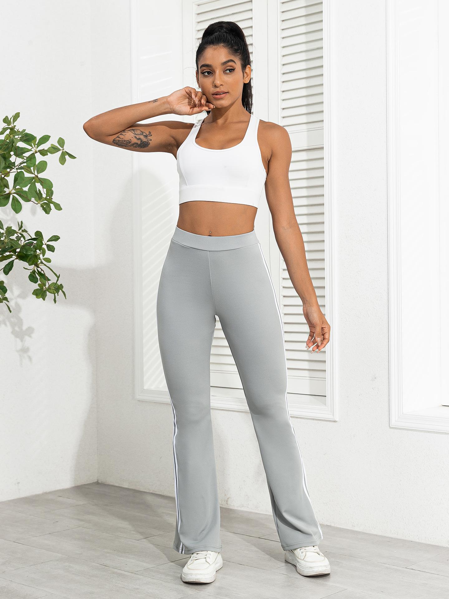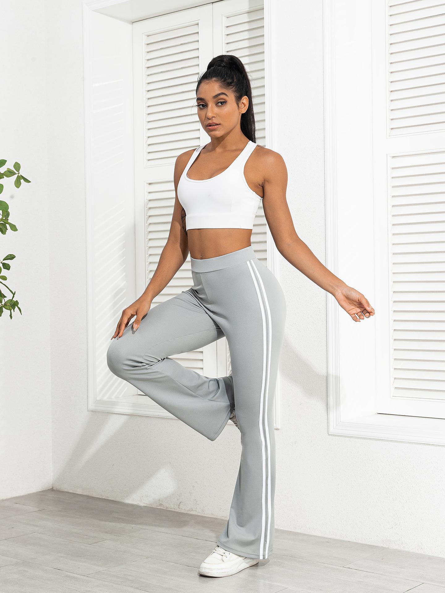 Pantalones Deportivos de Cintura Alta Dos Barras Fitness Running Pantalones de Yoga Más Largos Adelgazantes Ajustados Casuales Micro Pantalones de Pierna Ancha