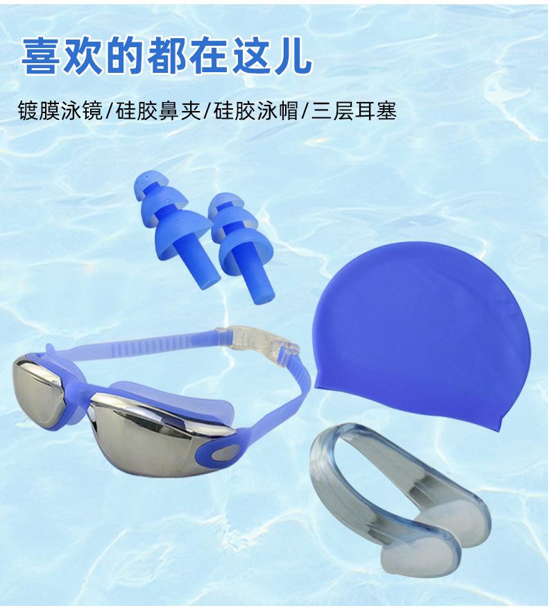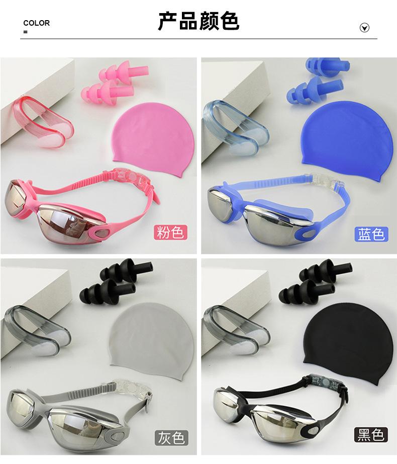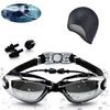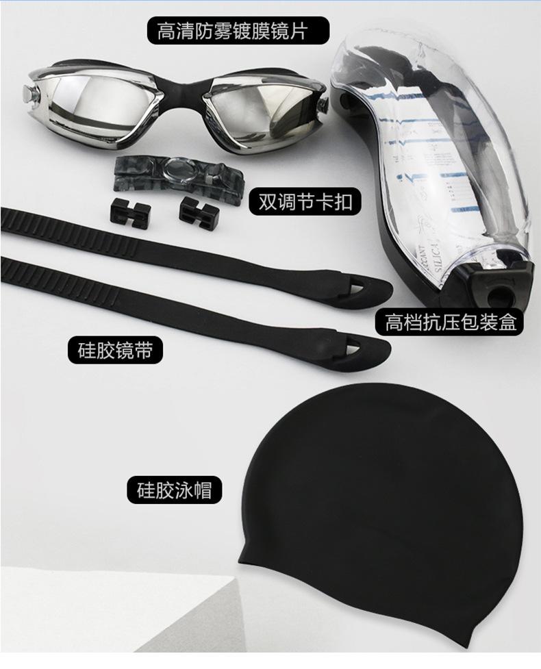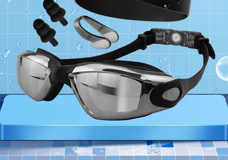 Traje de baño para adultos, gafas de natación, gorro de natación impermeable, antivaho, gorro de natación de silicona, clip para la nariz, tapón para los oídos, gafas de natación HD spot