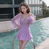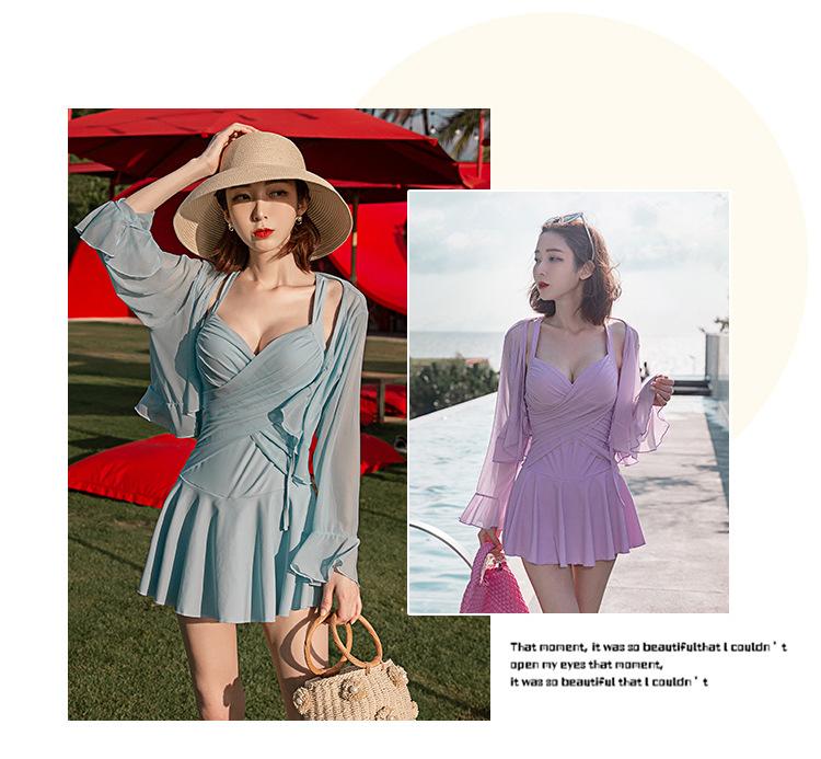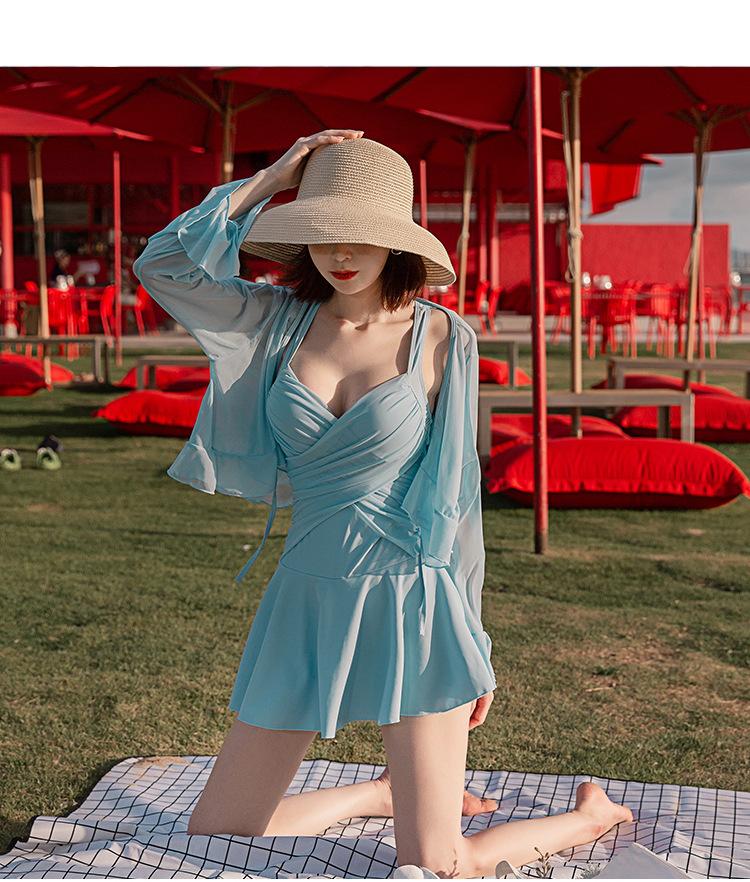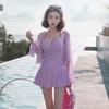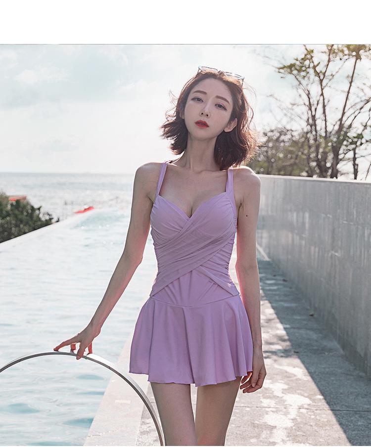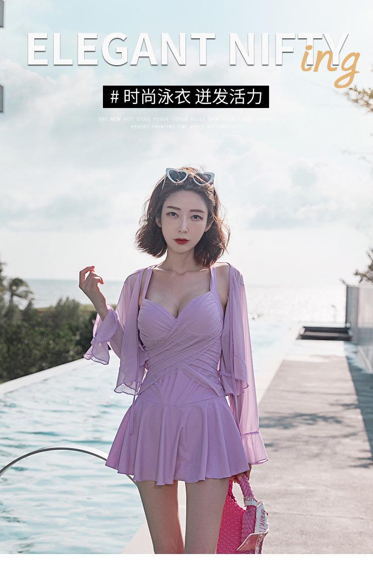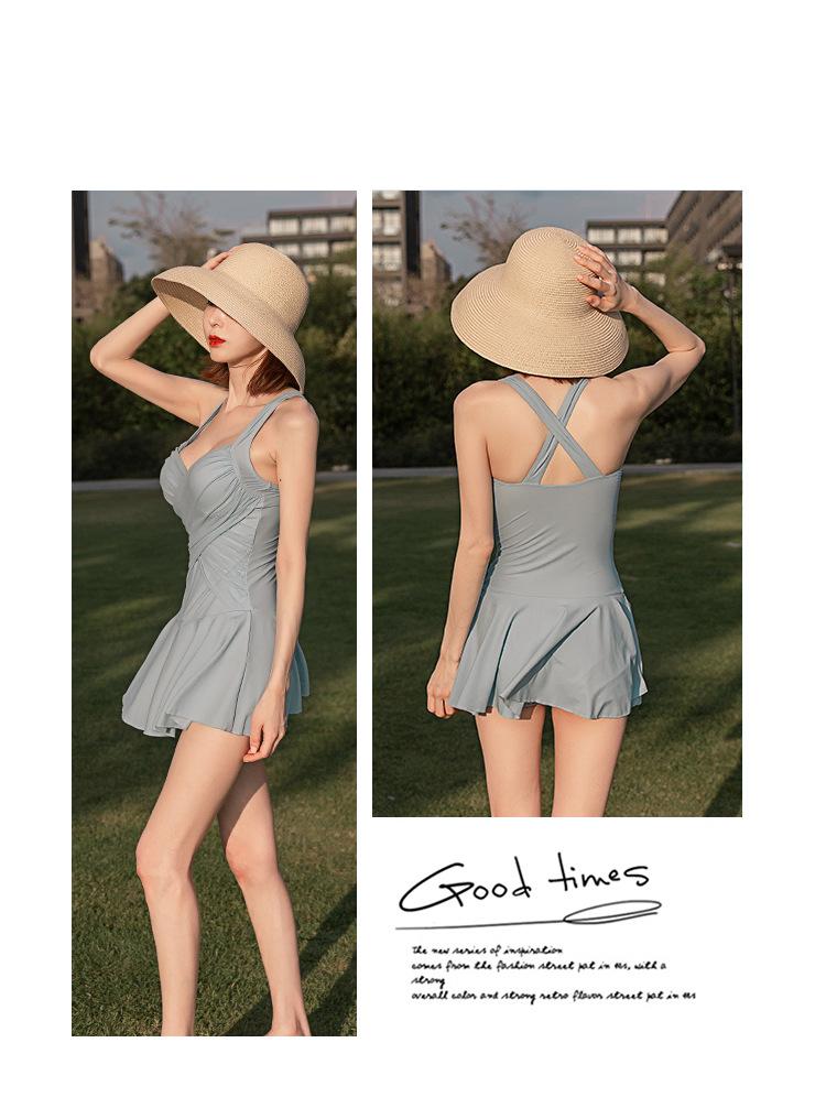 Traje de baño nuevo estilo coreano para mujer, que cubre el vientre, adelgazante, con correa pequeña para el pecho, almohadilla para el pecho, falda sexy de una pieza conservadora, ropa de viaje de aguas termales para mujer