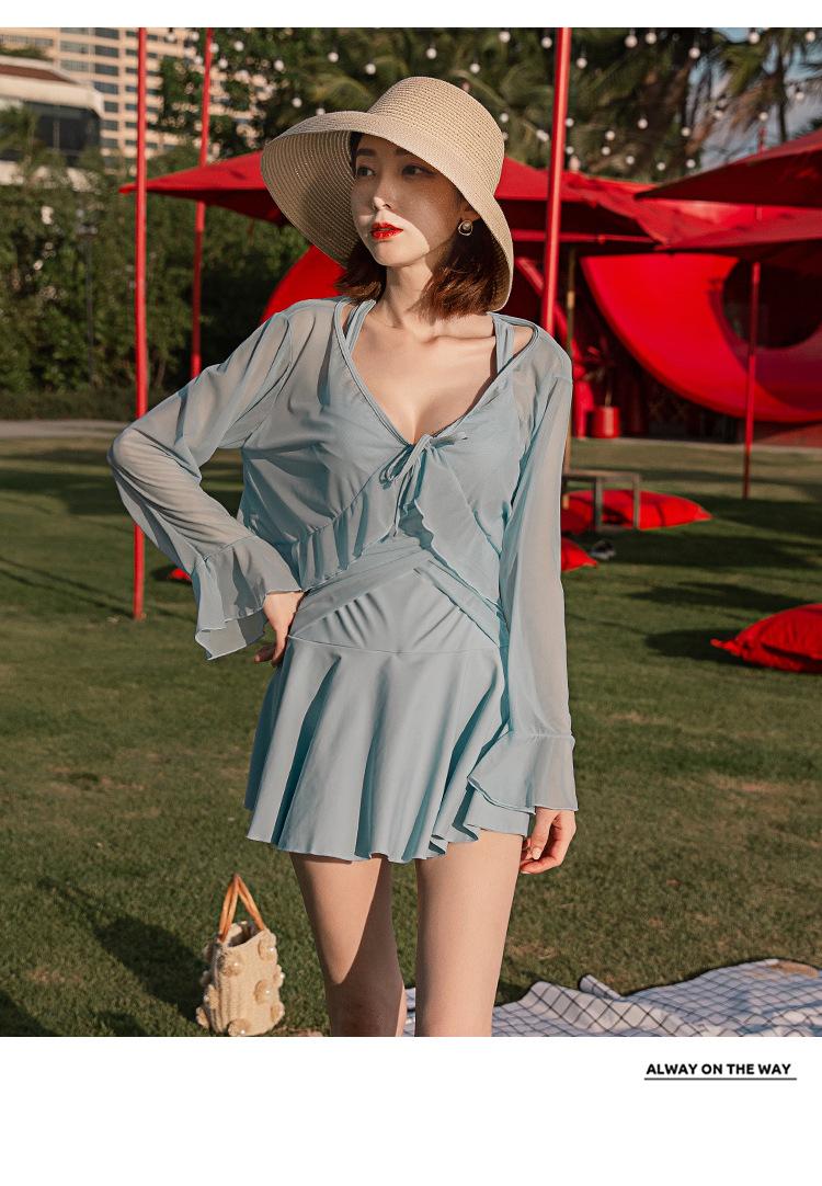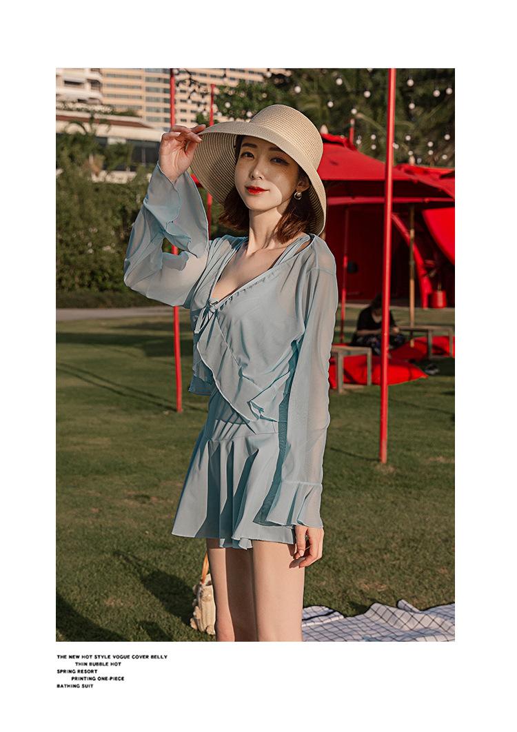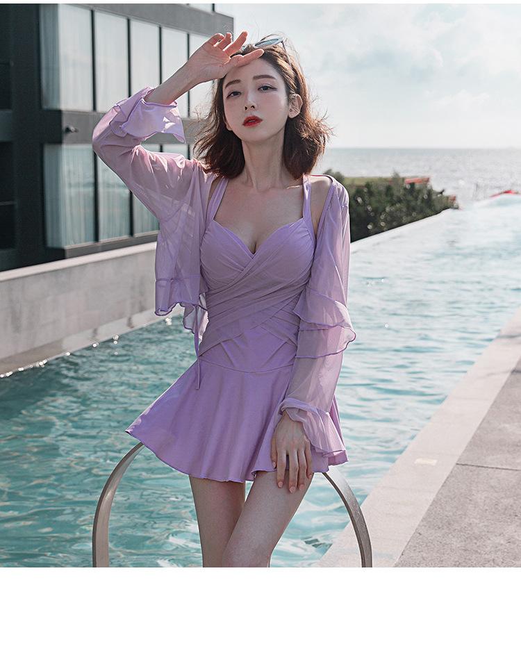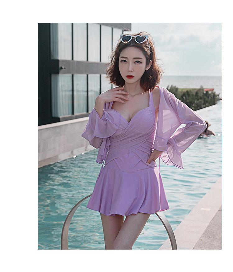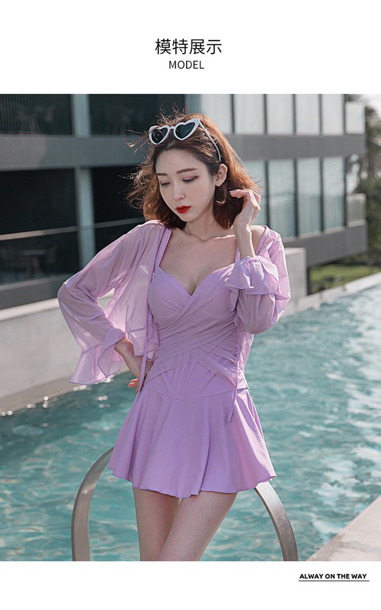 Traje de baño nuevo estilo coreano para mujer, que cubre el vientre, adelgazante, con correa pequeña para el pecho, almohadilla para el pecho, falda sexy de una pieza conservadora, ropa de viaje de aguas termales para mujer