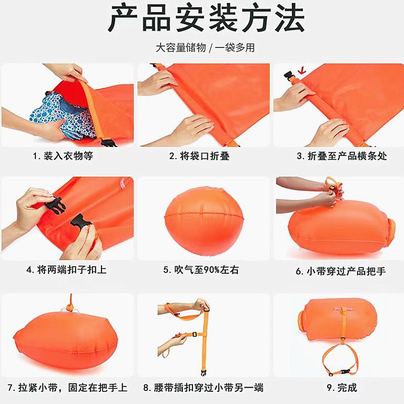 Tamaño de la bolsa de aire de natación de almacenamiento: 70*37cm