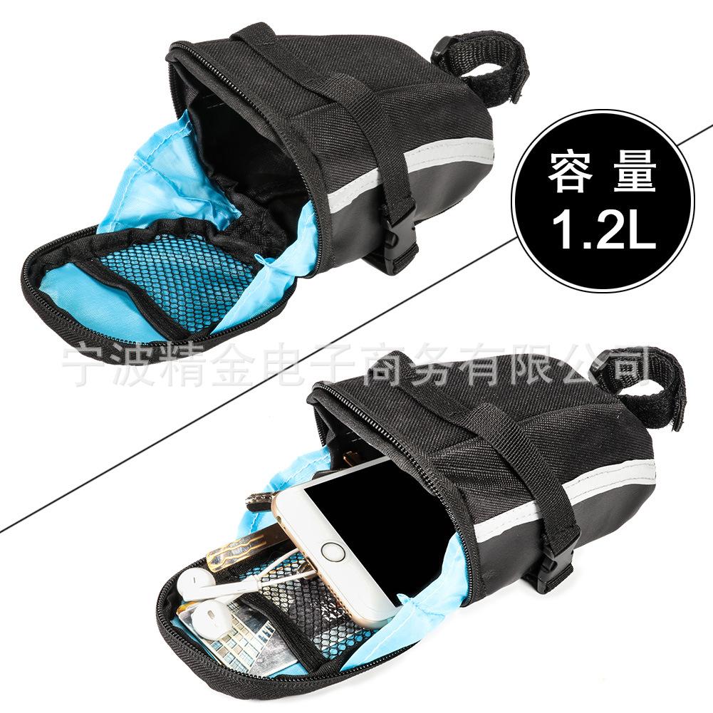 (4) La cinta reflectante alrededor de la bolsa de sillín puede aumentar la visibilidad en la oscuridad y mejorar la seguridad del ciclismo nocturno.