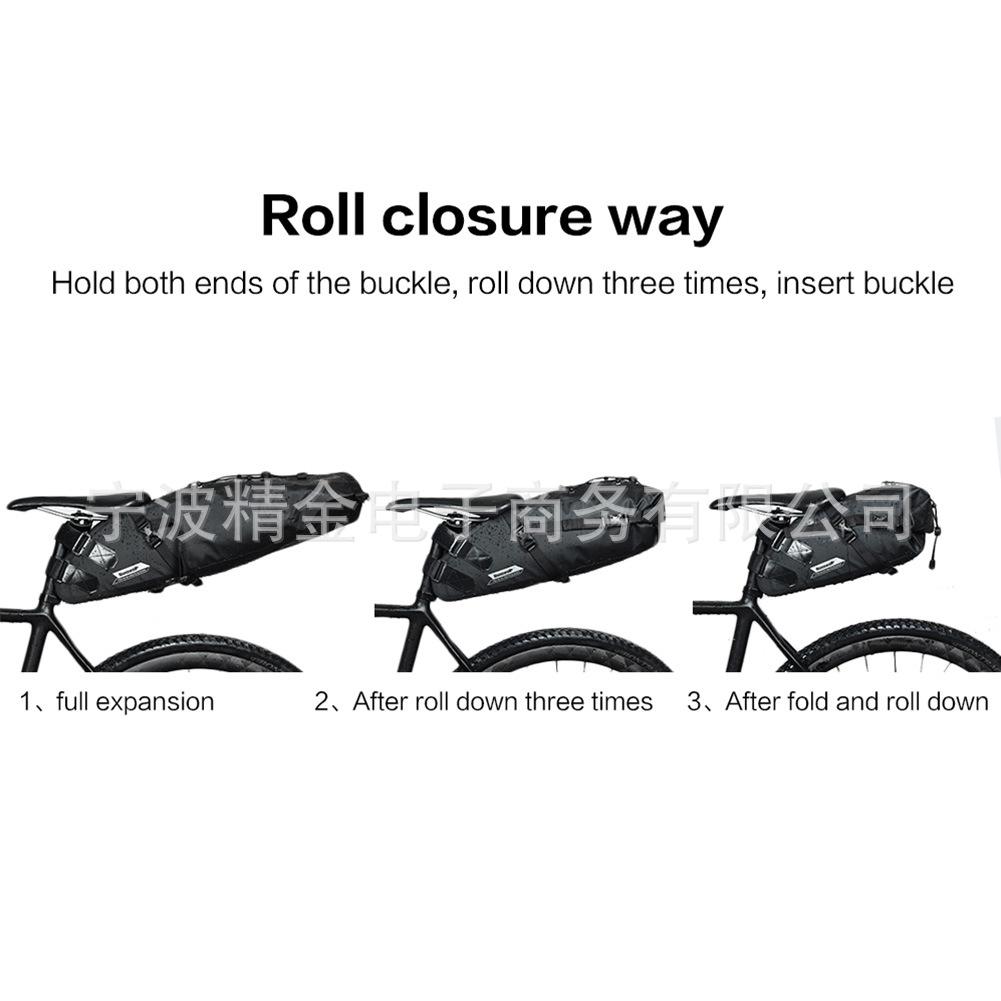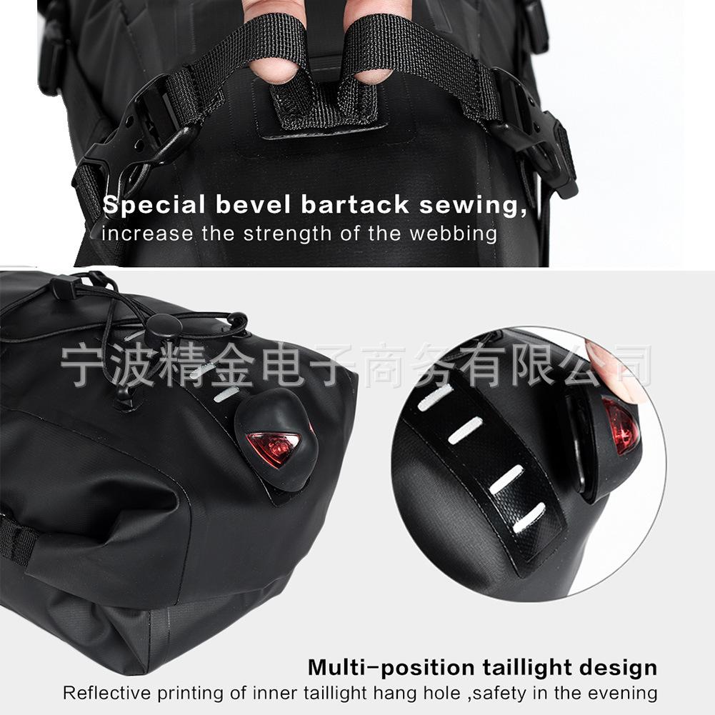 (2) Los lados y la cola de la bolsa están impresos con patrones reflectantes de alto brillo, lo que la hace más segura al conducir de noche. El diseño de hebilla colgante para luz trasera multicapa permite colgar la luz trasera incluso después del almacenamiento.