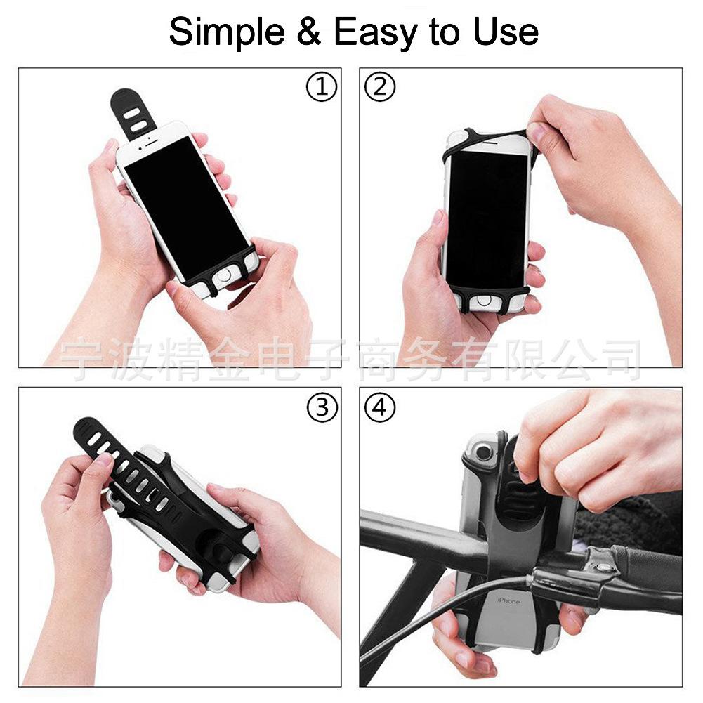 (2) Hecho de material de silicona, es resistente a la suciedad y al lavado con agua. La silicona suave nunca rayará ni dañará el teléfono. El diseño de lengüeta permite que el teléfono se fije firmemente al manillar de la bicicleta sin preocuparse por que se caiga.