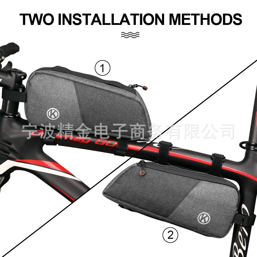 (3) Dos métodos de montaje: tubo superior o tubo de sillín. La estructura robusta ayuda a la bolsa de cuadro a mantener su forma y es muy estable. No hay necesidad de preocuparse por la deformación y evita que los artículos se aprieten.