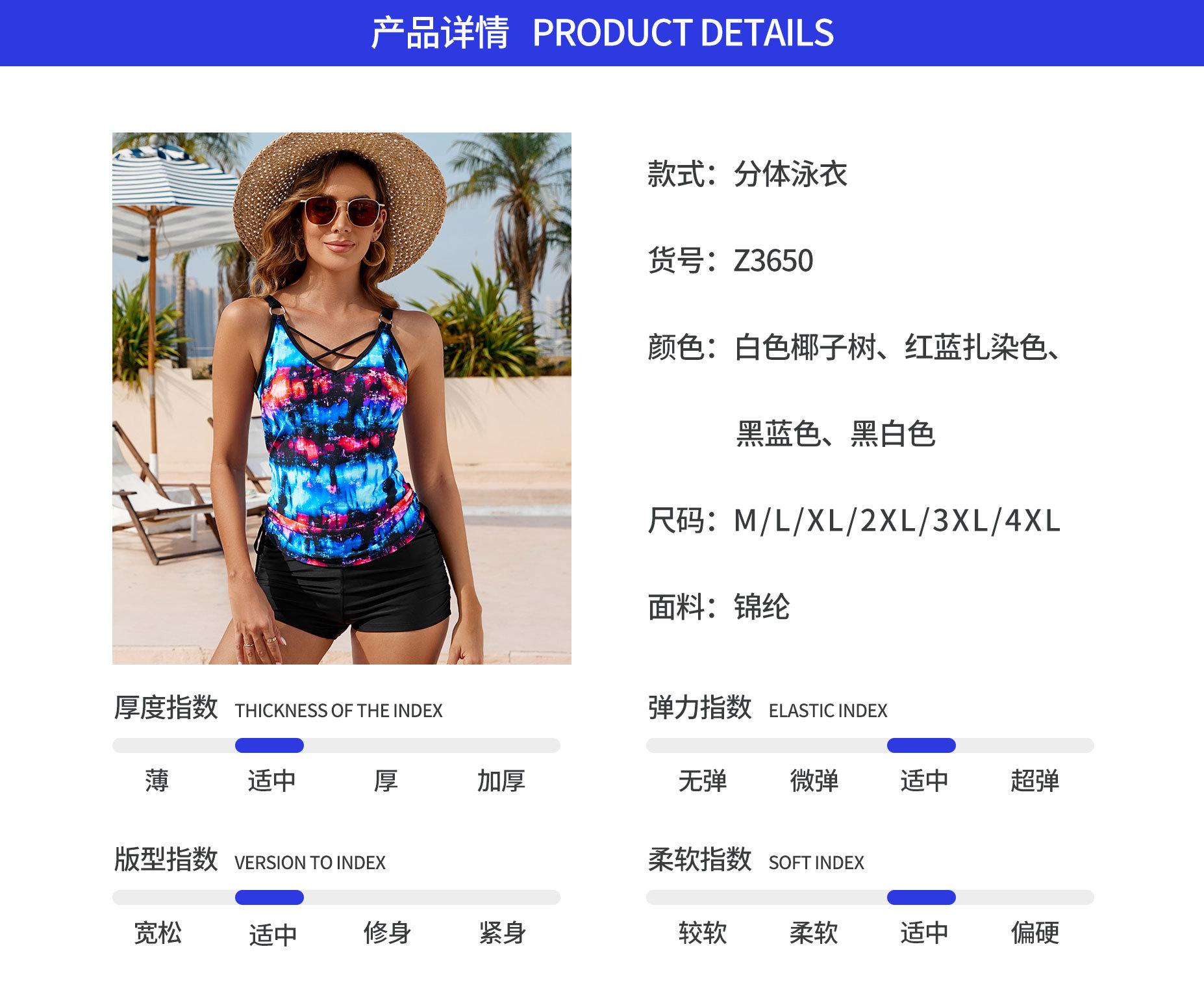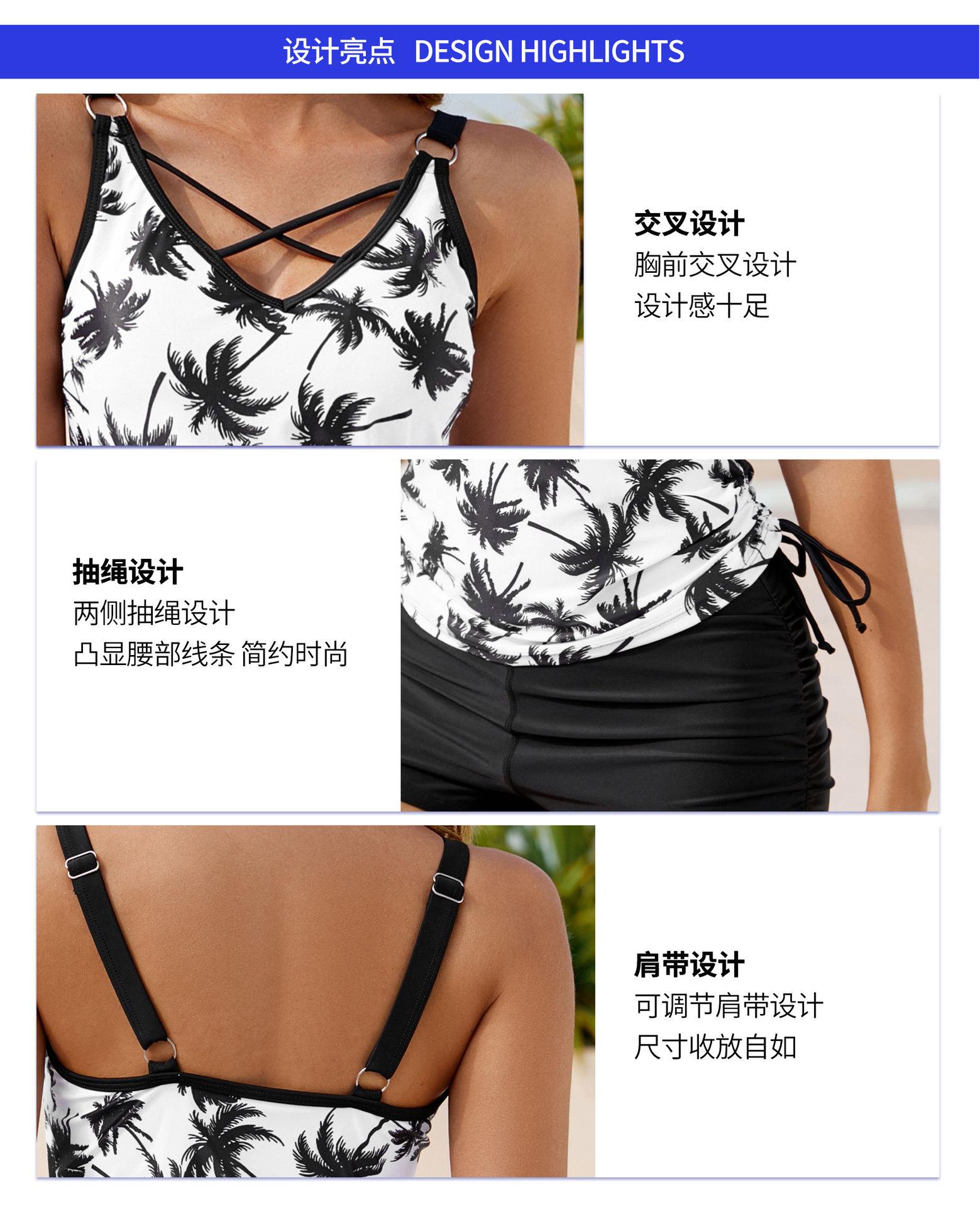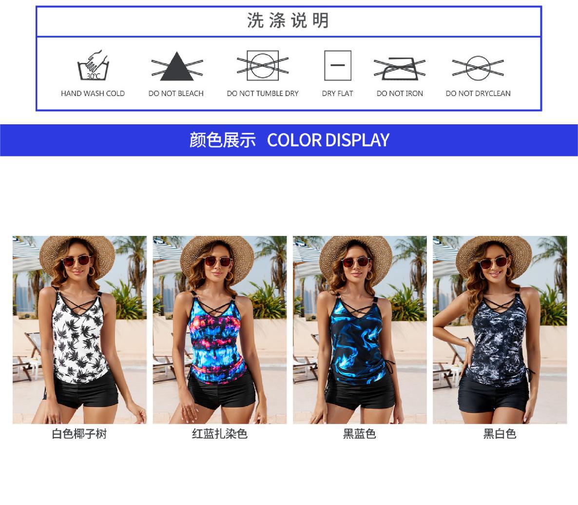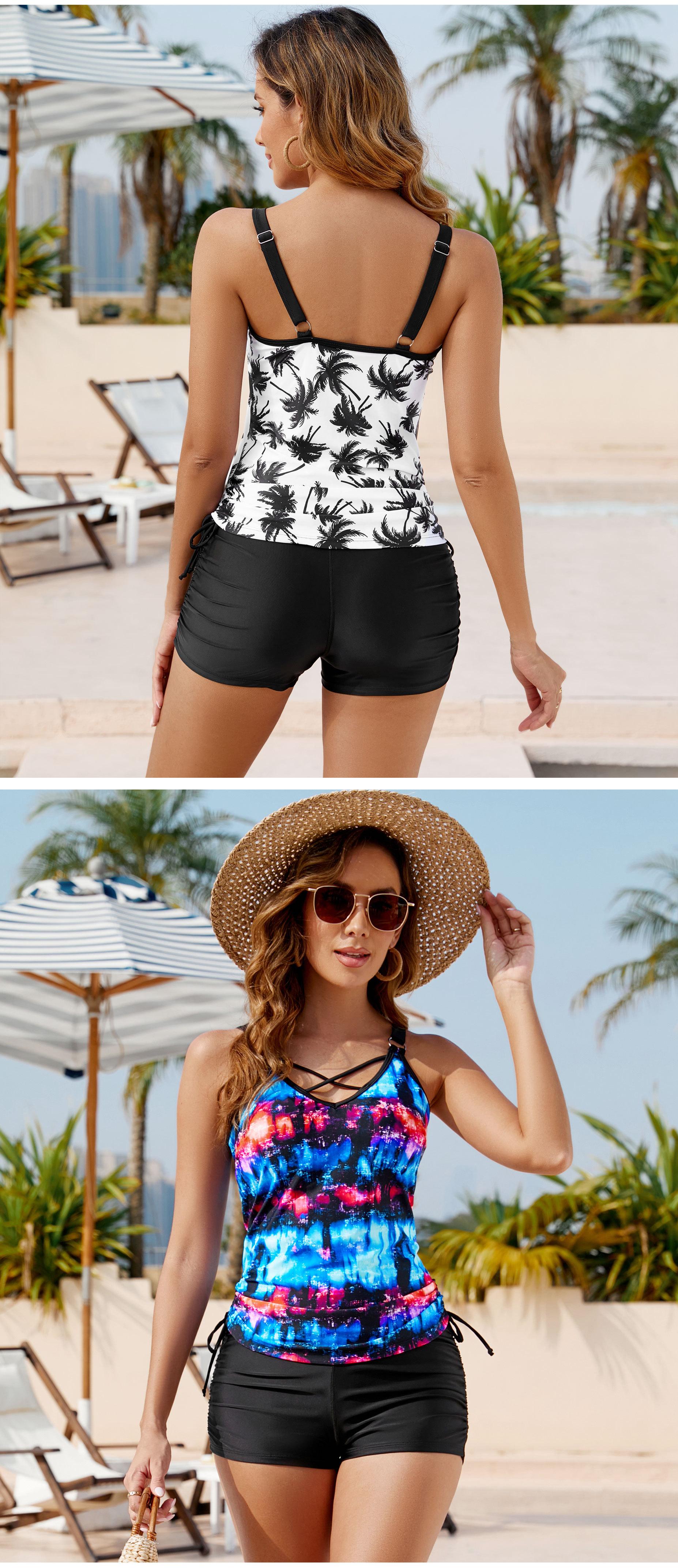 2025 Nuevo Traje de Baño Tankini Cruzado de Exportación Europeo y Americano para Cubrir el Vientre y Adelgazar, Estampado, Talla Grande para Mujer, Traje de Baño Bóxer en Stock