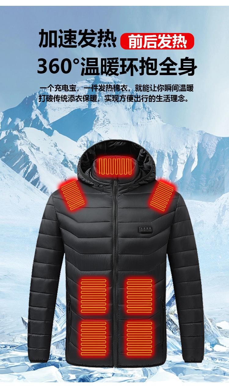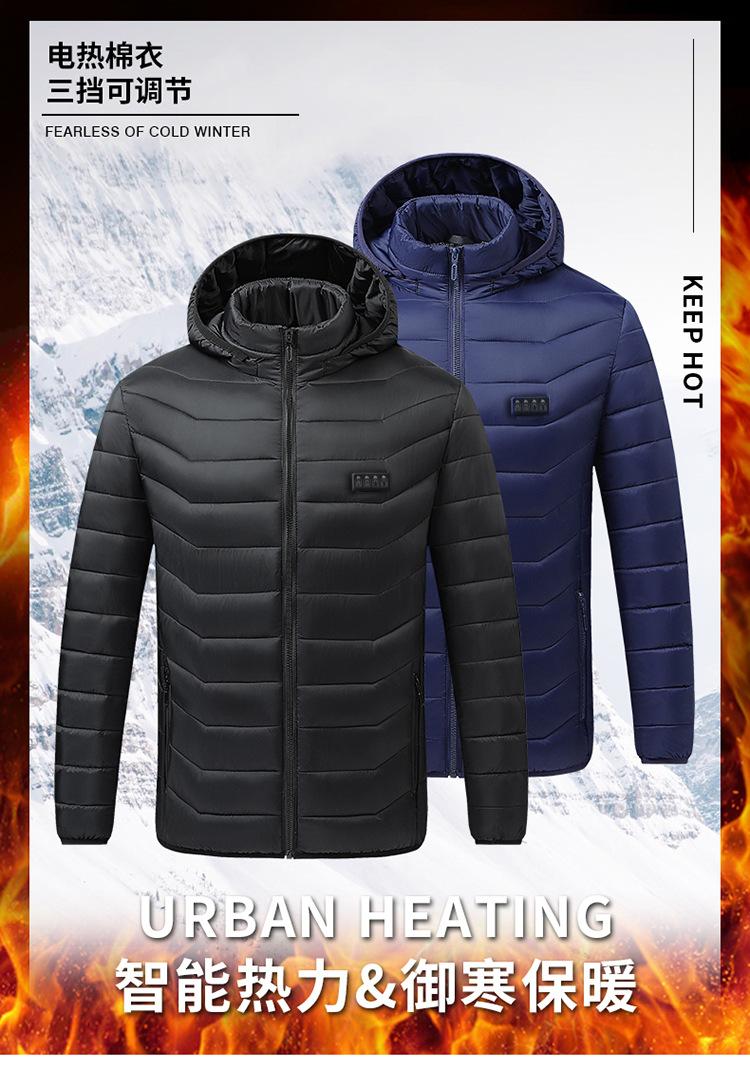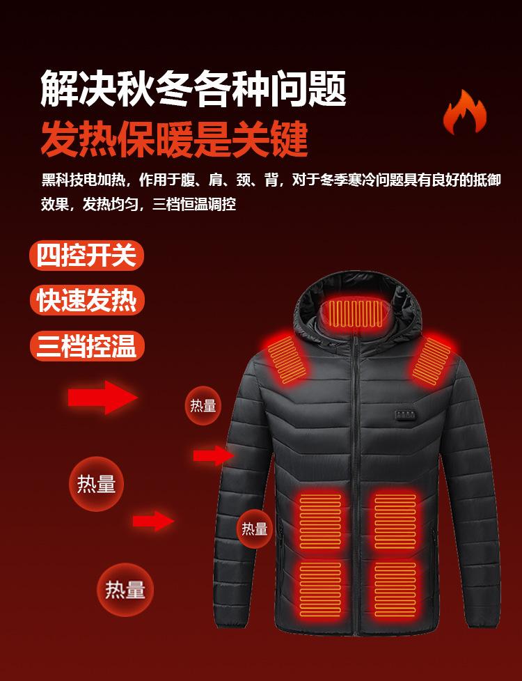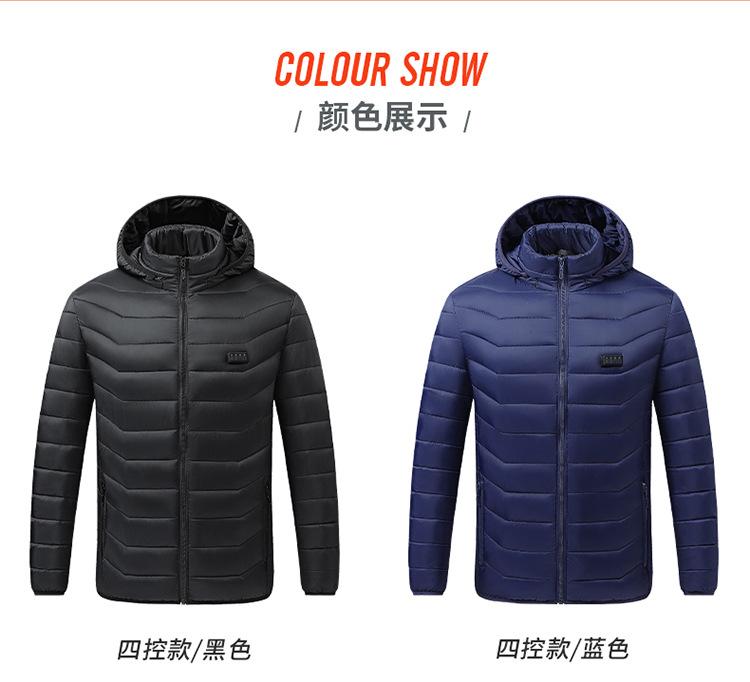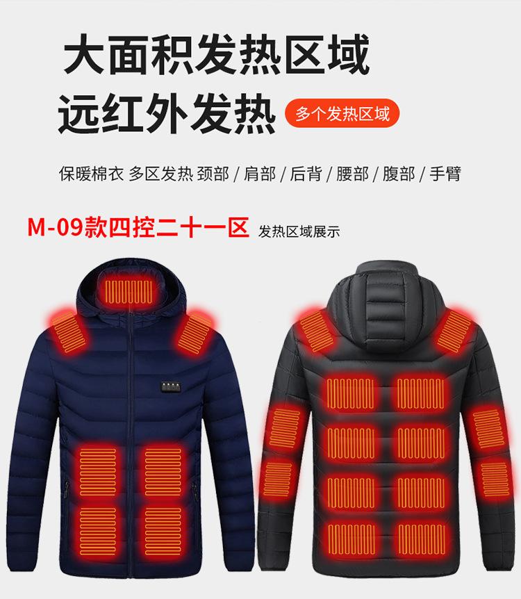 Ropa de invierno con calefacción eléctrica inteligente, cálida, con cuatro zonas de control, 21 temperaturas constantes, acolchada de algodón, ropa con calefacción eléctrica USB, acolchada de algodón a temperatura constante.