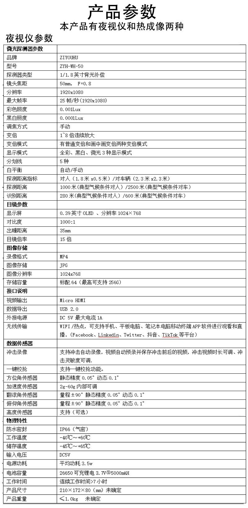 Cámara de visión nocturna Tiger WH-50/50X HD de alta potencia para fotografía y vídeo, totalmente negra, con infrarrojos, para aventuras al aire libre y rescate.