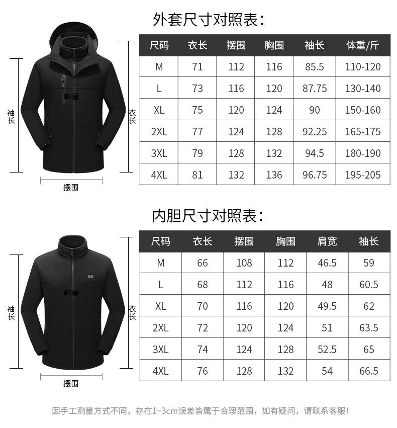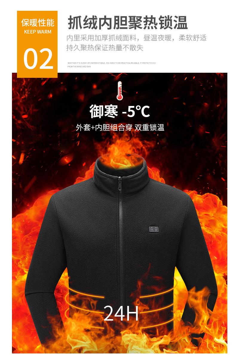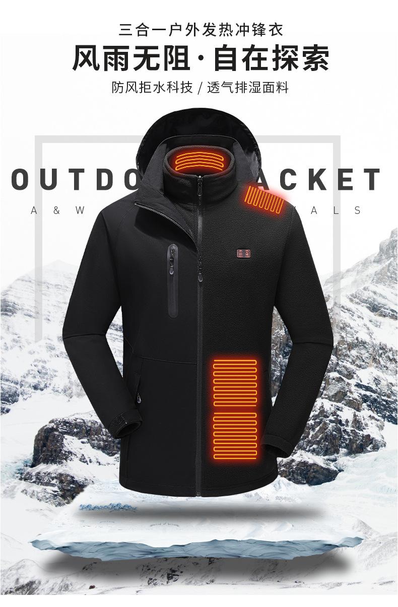 Ropa de carga con calefacción inteligente transfronteriza nueva 15 regiones calefacción a temperatura constante chaqueta acolchada de algodón con calefacción cálida tres en uno