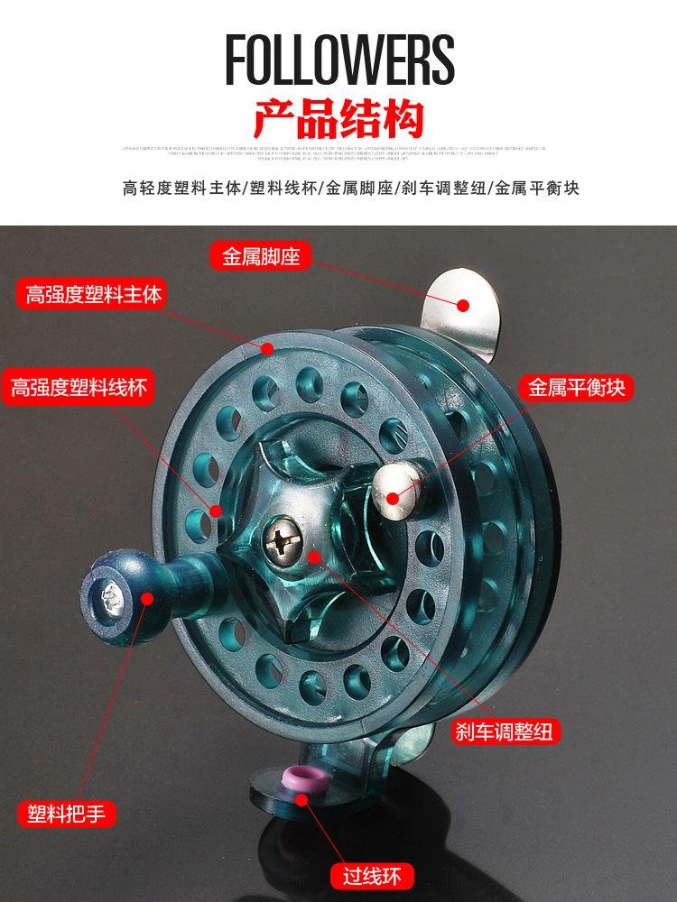 Tiene frenos y liberación de potencia. La línea No. 3 se puede enrollar para 100 metros. Tenga en cuenta que cuando se aplican los frenos de este producto, la línea no se puede enrollar ni desenrollar. La línea solo se puede enrollar o desenrollar después de que se liberan los frenos. Además, el carrete para pesca en hielo no se puede lanzar. La línea solo se puede enrollar y desenrollar agitando la pluma. ¡Tenga cuidado si le importa!