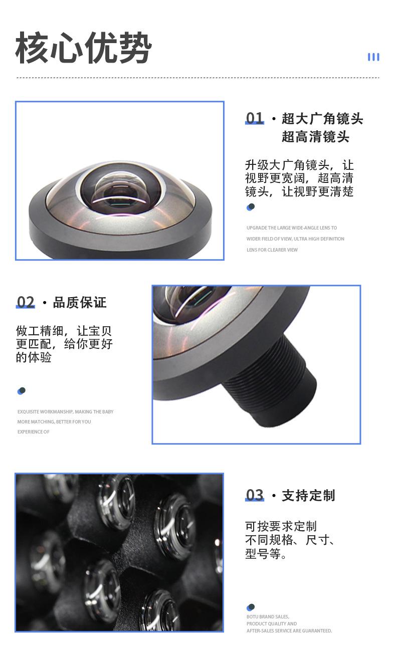 Fabricante en stock lente ojo de pez gran angular cámara panorámica de 360 grados cámara 13 millones de píxeles 1/2.3imx117