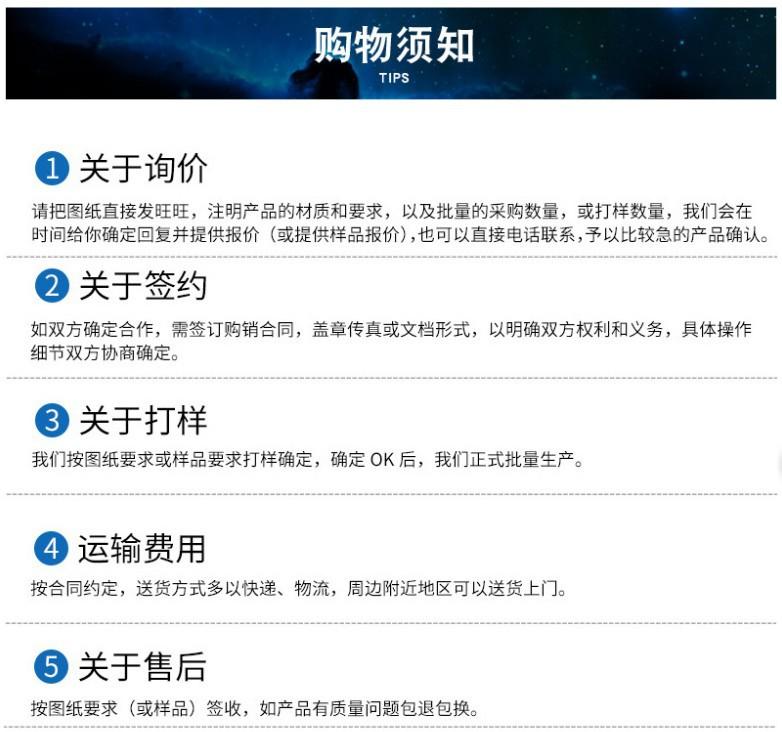 Recordatorio cálido: Este producto es un producto personalizado procesado según dibujos y muestras. El precio debe calcularse en función de los requisitos de procesamiento del producto. ¡Por favor, póngase en contacto con el servicio de atención al cliente para obtener detalles!