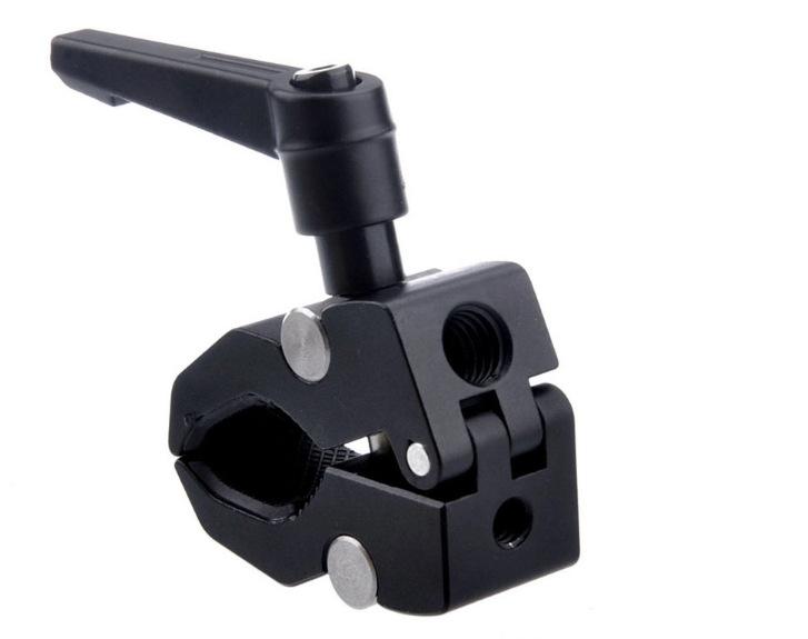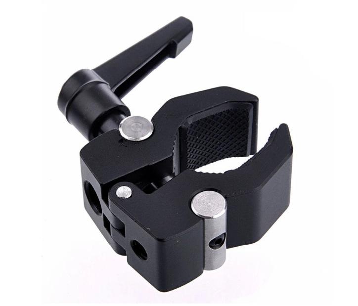 El potente mandril se puede sujetar al objeto de soporte rápida y fácilmente. Cuando se usa con el brazo mágico, puede instalar fácilmente pantallas LCD, luces de video y otros equipos fotográficos.