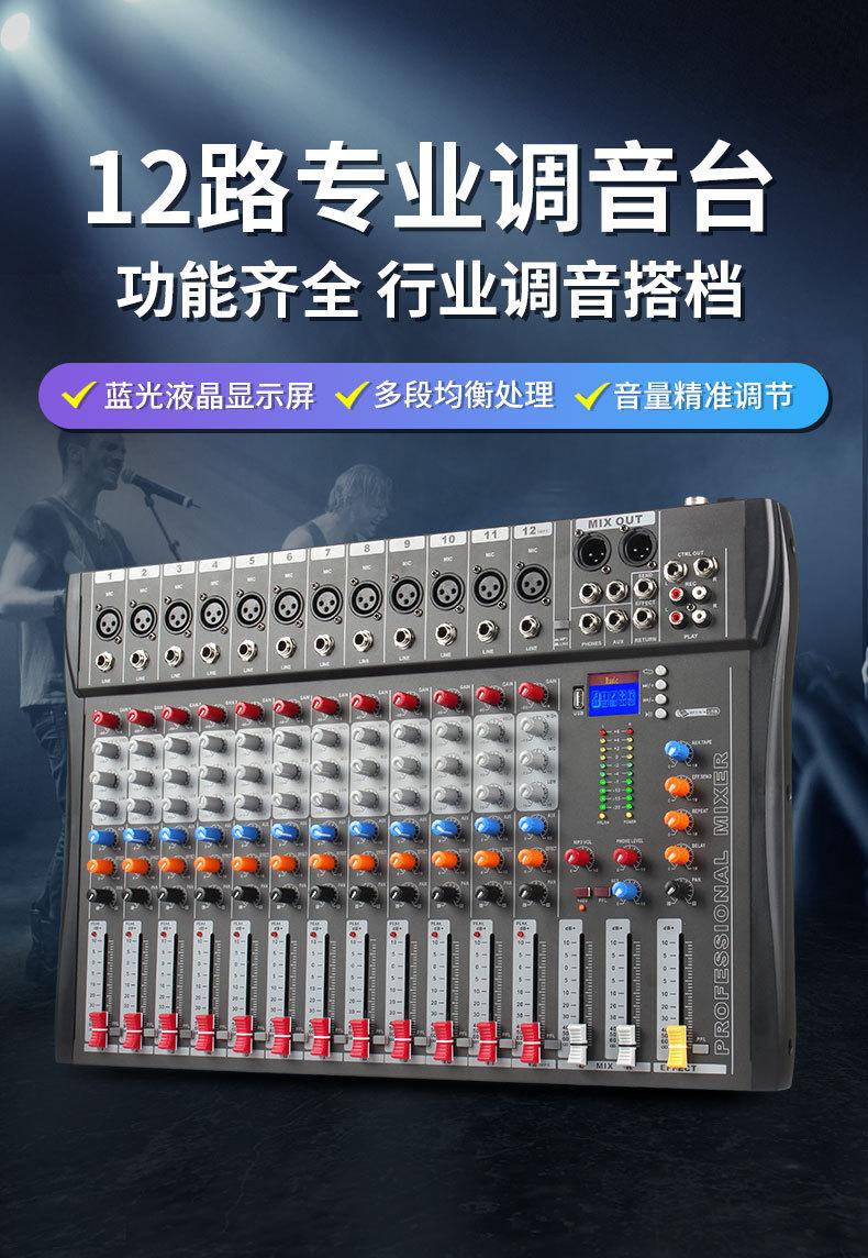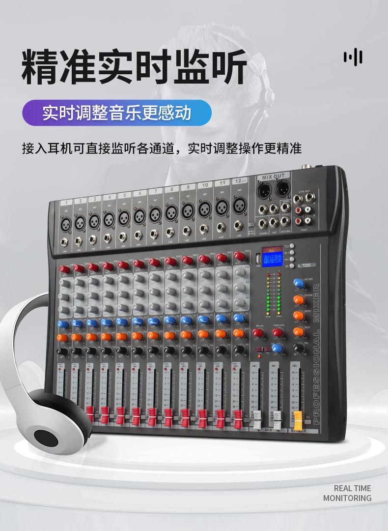 Mezclador de 12 canales Equipo de escenario Djmixer Bluetooth Karaoke Grabación Transmisión en vivo Mezclador de audio Bluetooth 5.0