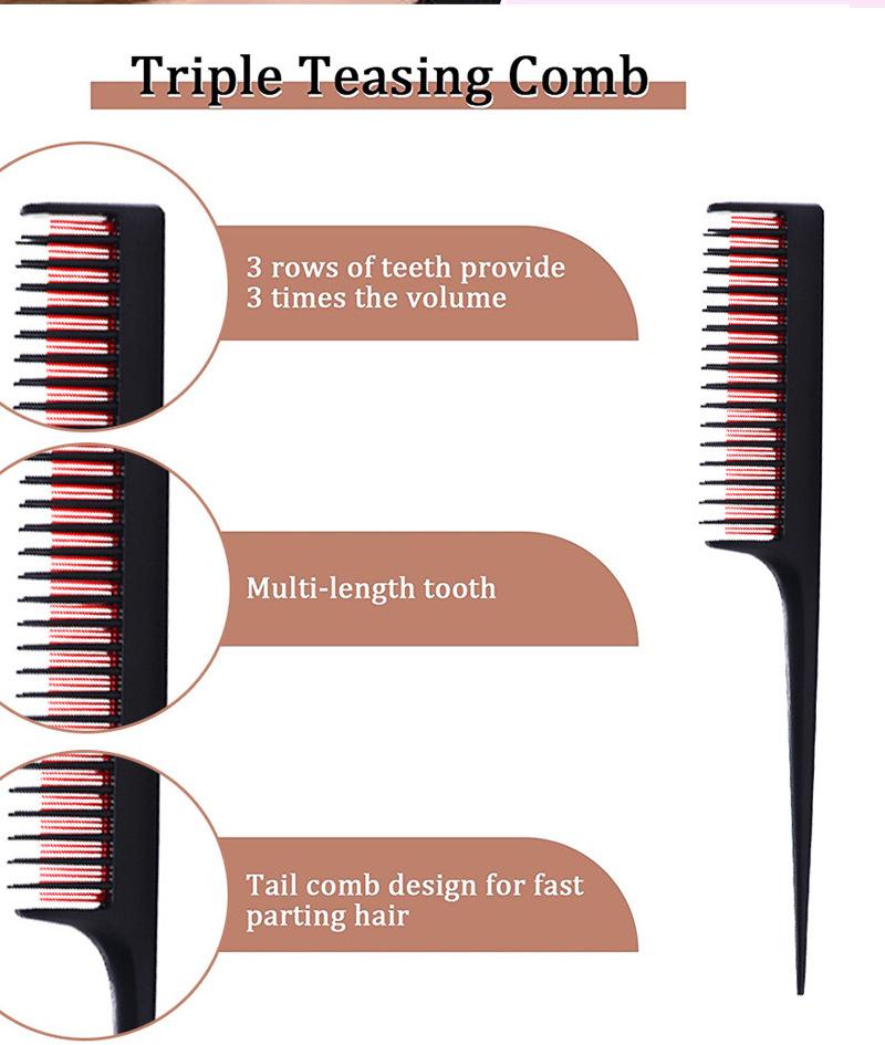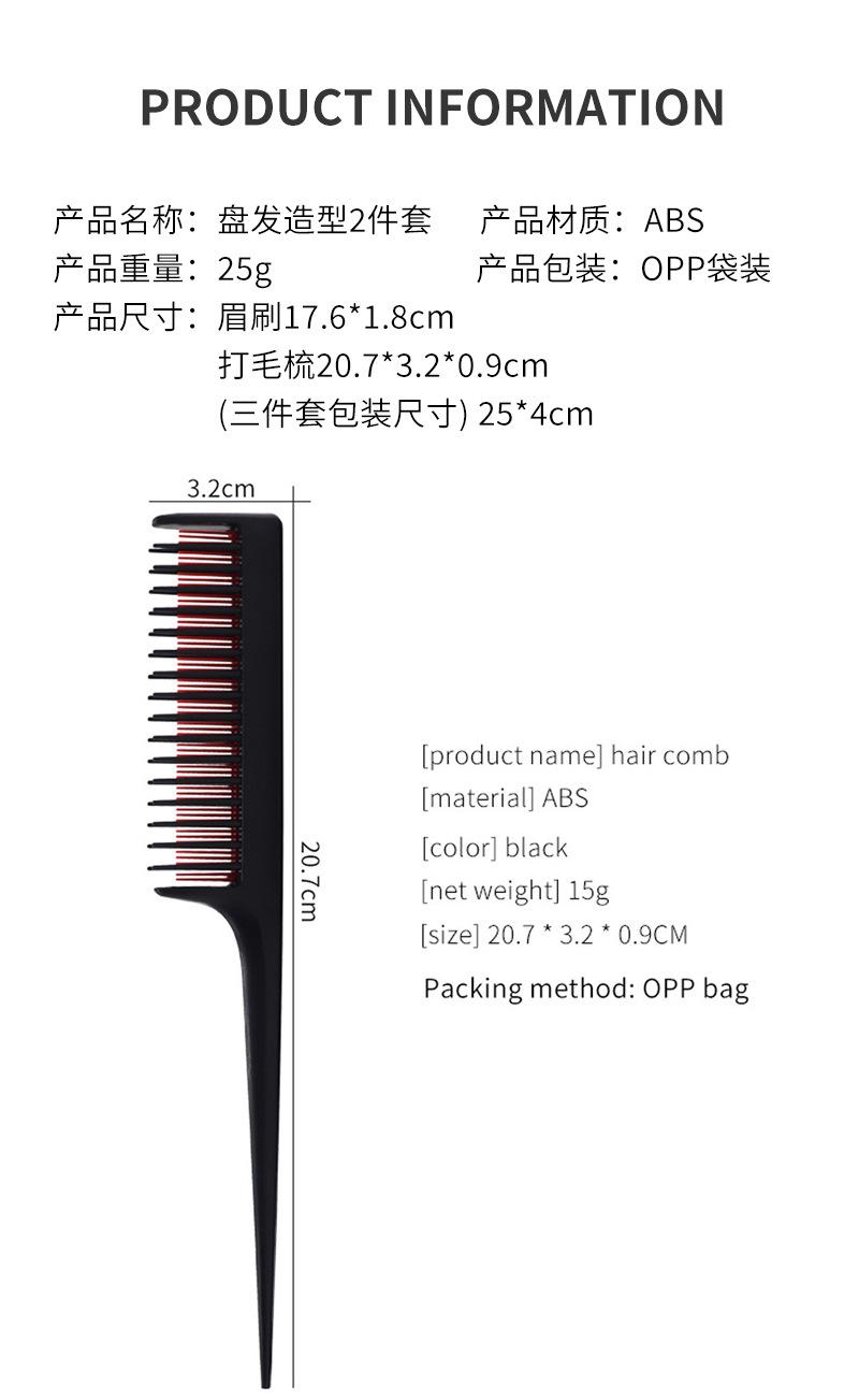 Venta caliente transfronteriza, peine de tres filas, peine de cola puntiaguda, cepillo para cejas, peine doble, cepillo para el control de bordes rotos, herramientas de peluquería
