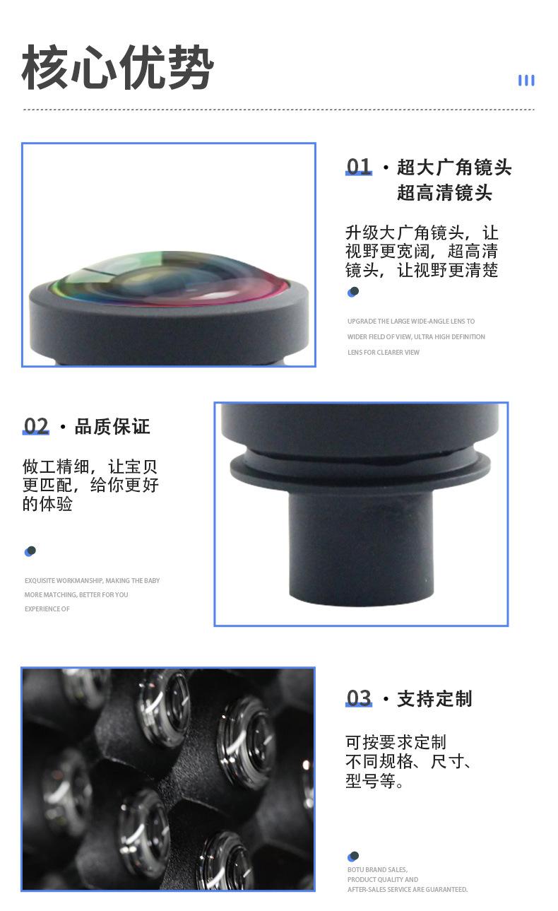 Lente de coche impermeable IP67 cámara panorámica 360 proceso de artesanía AA corrección de alta y baja temperatura vista frontal vista trasera