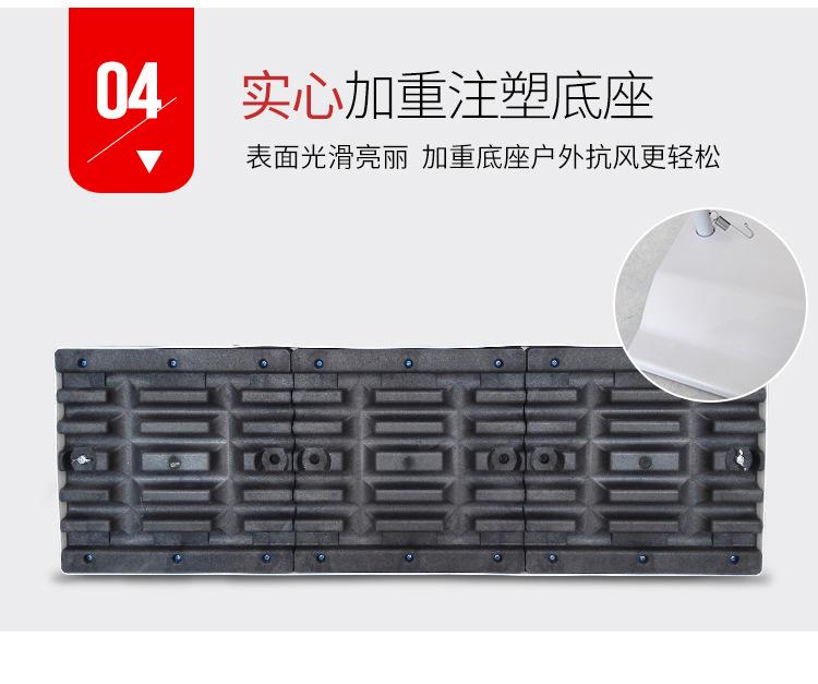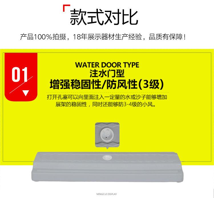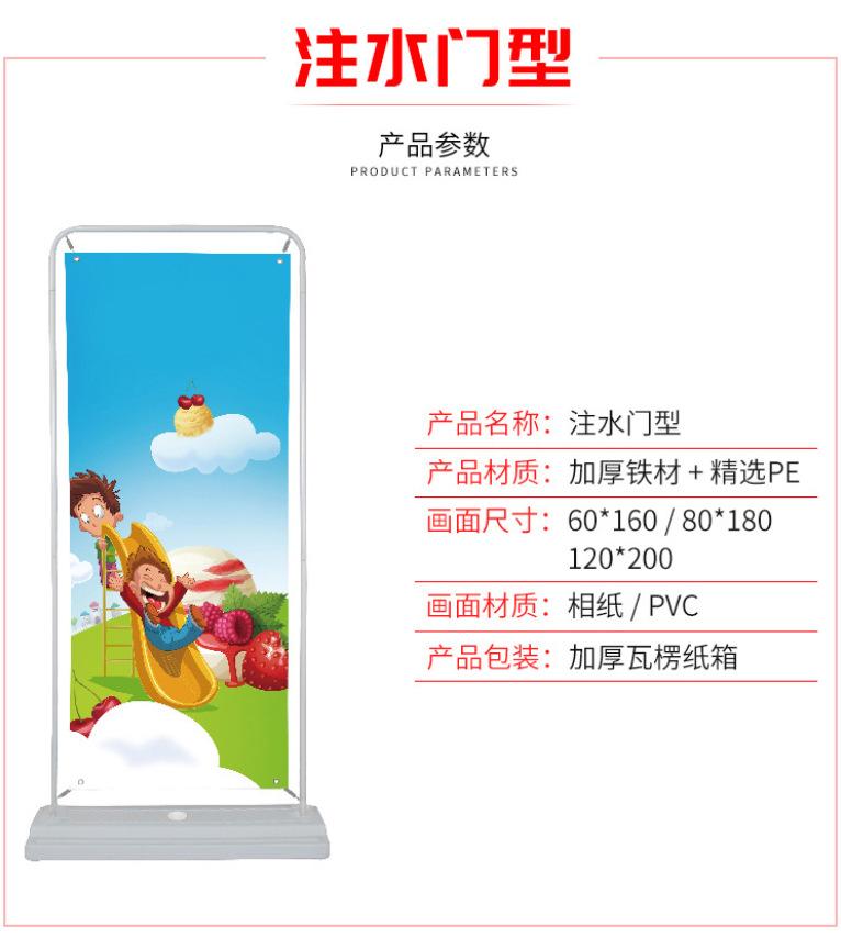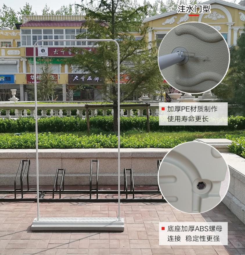 Material: Todo el conjunto de productos de puerta de hierro está hecho de hierro puro, la base de la puerta rellenable con agua está hecha de material PE engrosado, y la varilla de hierro está reforzada para soportar la pantalla.