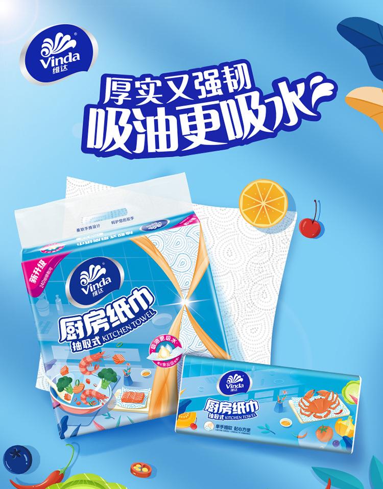 Papel de cocina Vida, papel absorbente para cocina, toallita absorbente de aceite y agua, ideal para freír alimentos en el hogar.