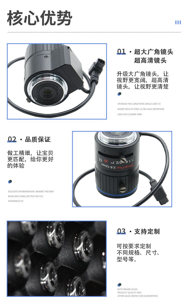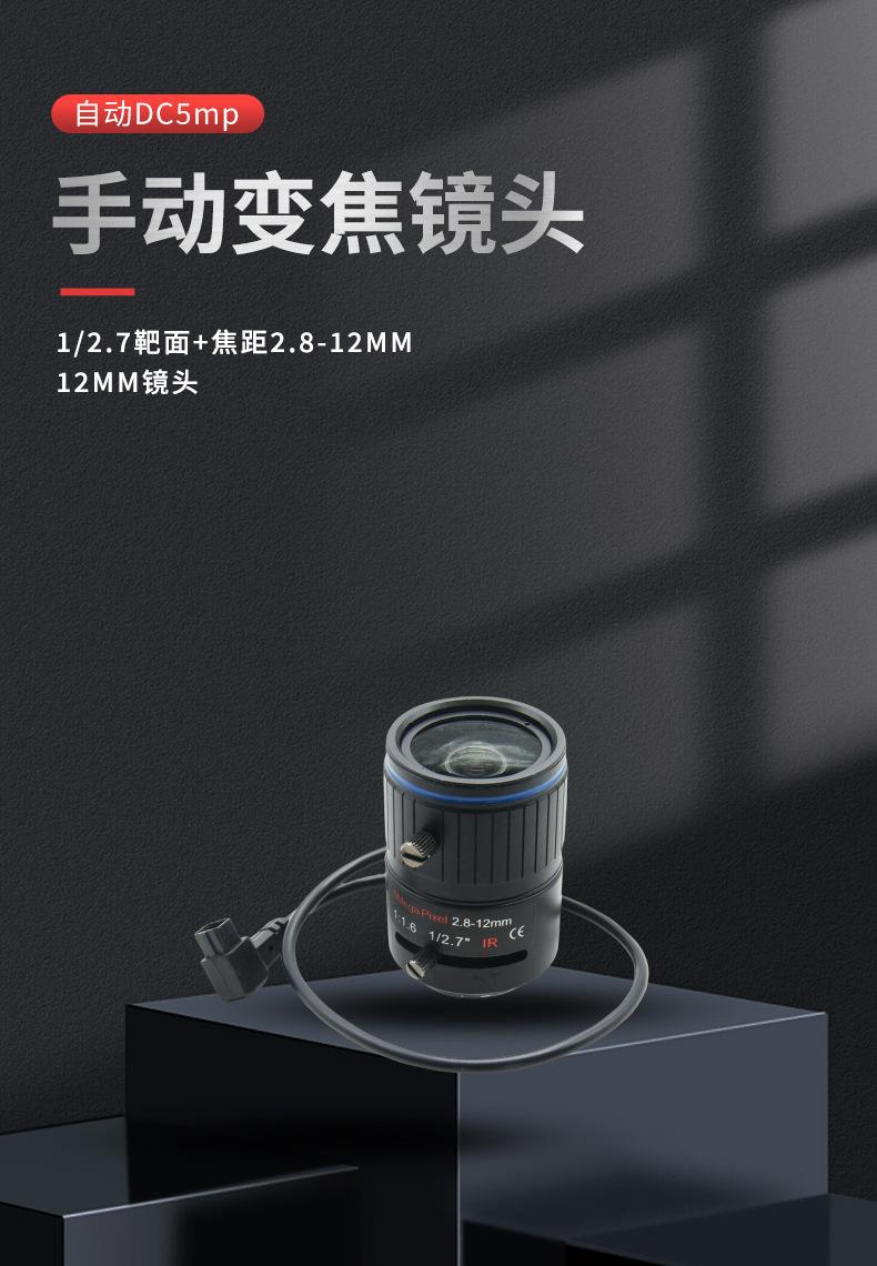 Suministro directo de fábrica: lente de 12 mm, CC automática, 5 MP, distancia focal objetivo de 1/2,7 mm, zoom manual CS de 2,8-12 mm.