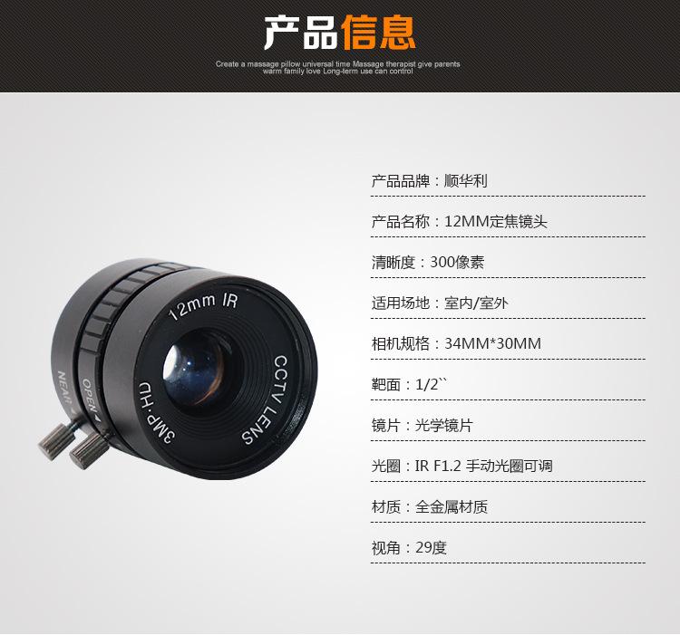 Cámara de vigilancia HD 3 millones de píxeles apertura manual enfoque fijo lente de visión 12MM lente industrial lente CCD