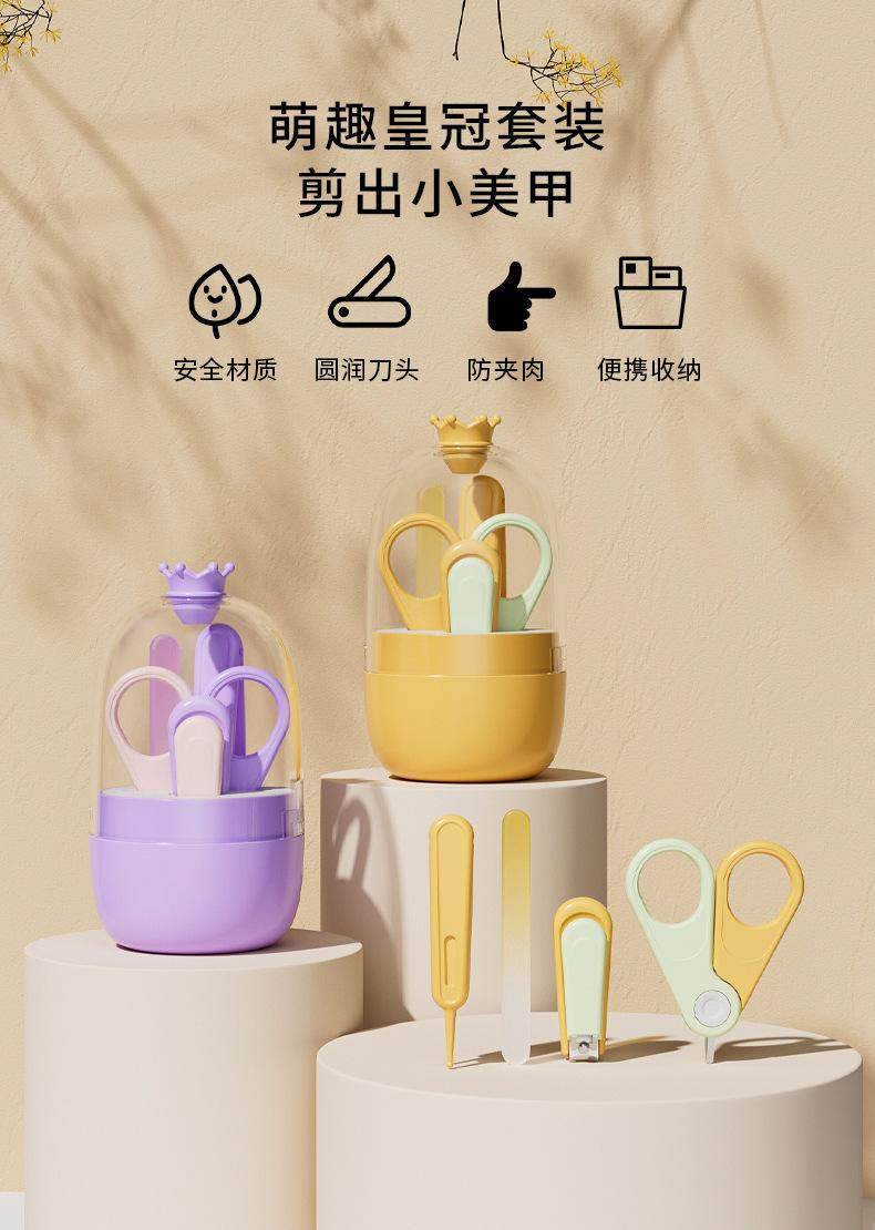 Small crown nail clipper set-purple (set of 4), Small crown nail clipper set-yellow (set of 4), Nail scissors ...