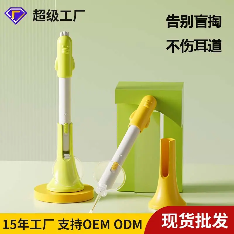 Cuchara luminosa para oídos de niños con lupa y juego de base herramienta de limpieza de oídos de silicona para bebés cuchara visual para oídos