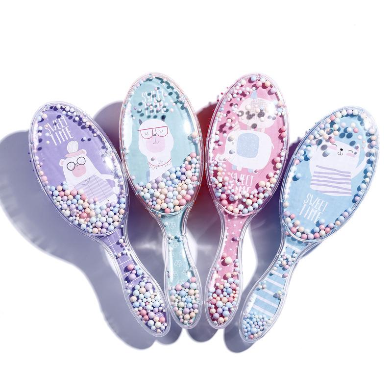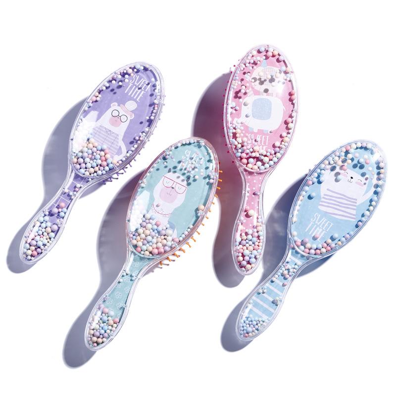 Peine Ovalado de Lentejuelas Brillantes con Cojín de Aire Peine con Bolsa de Aire Patrón de Dibujos Animados Peine de Peluquería Transparente Peine para Peinar Cabello Esponjoso