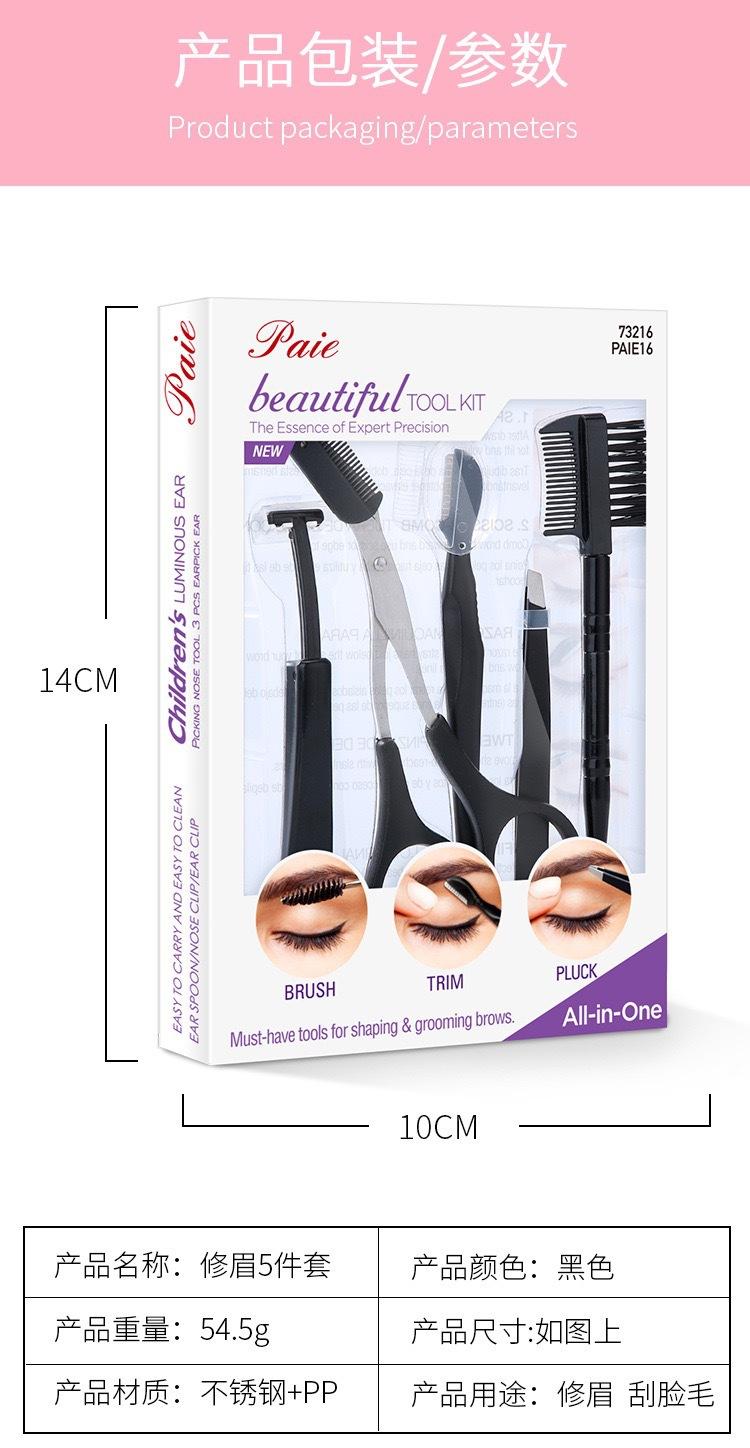 Navaja recortadora de cejas de acero inoxidable negro transfronterizo, 5 piezas, clip para cejas afilado con red, navaja para afeitar cejas, herramienta de belleza con red macro