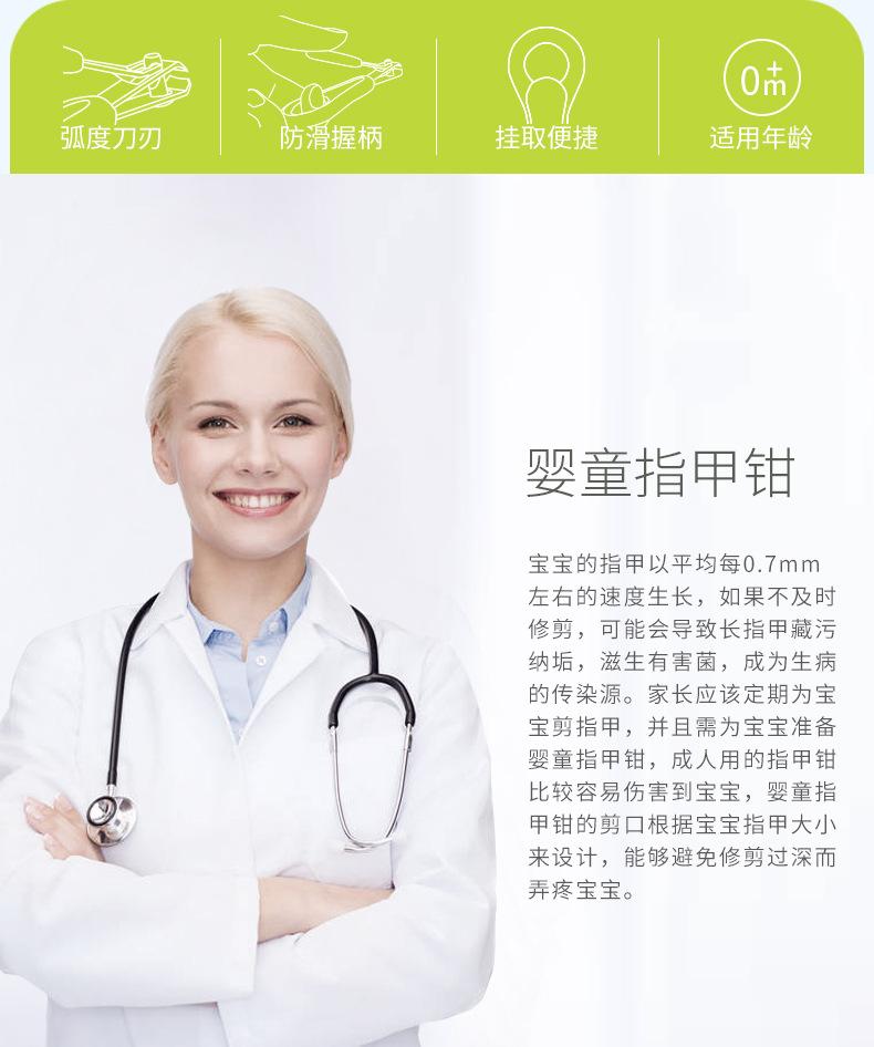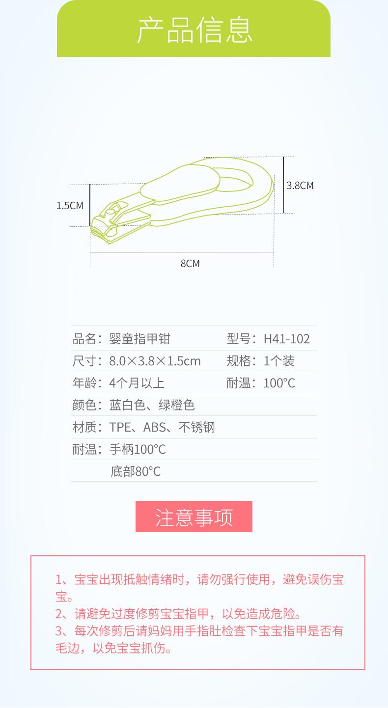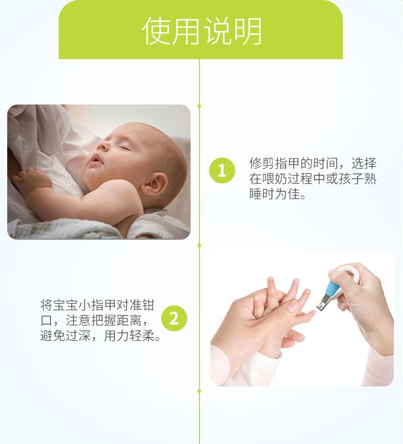 G. Por favor, evite cortar demasiado las uñas de su bebé para evitar el peligro. Después de cada corte, por favor use la punta de su dedo para verificar si hay bordes ásperos en las uñas de su bebé para evitar rasguños.