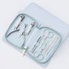 Blue Grey Light Luxury Leather Cover Nail Clipper Set of 9