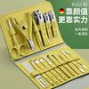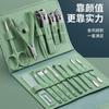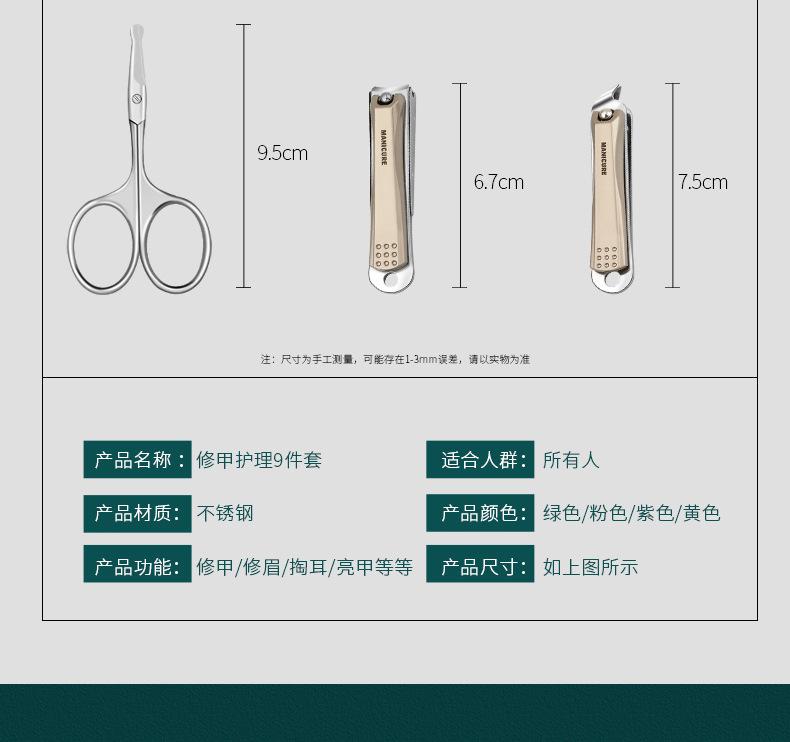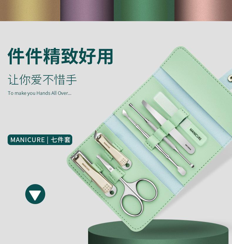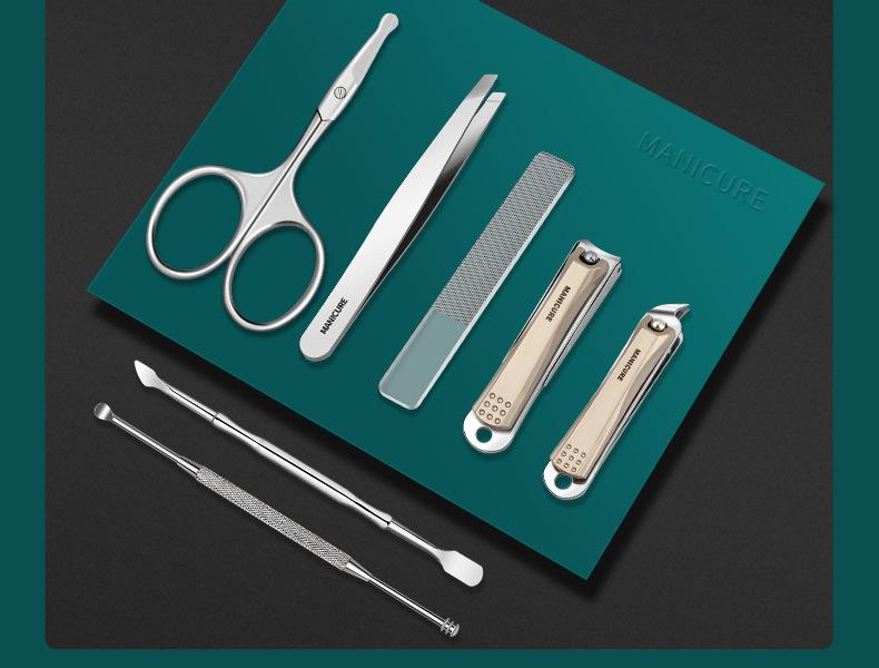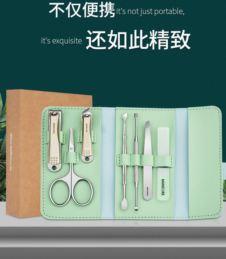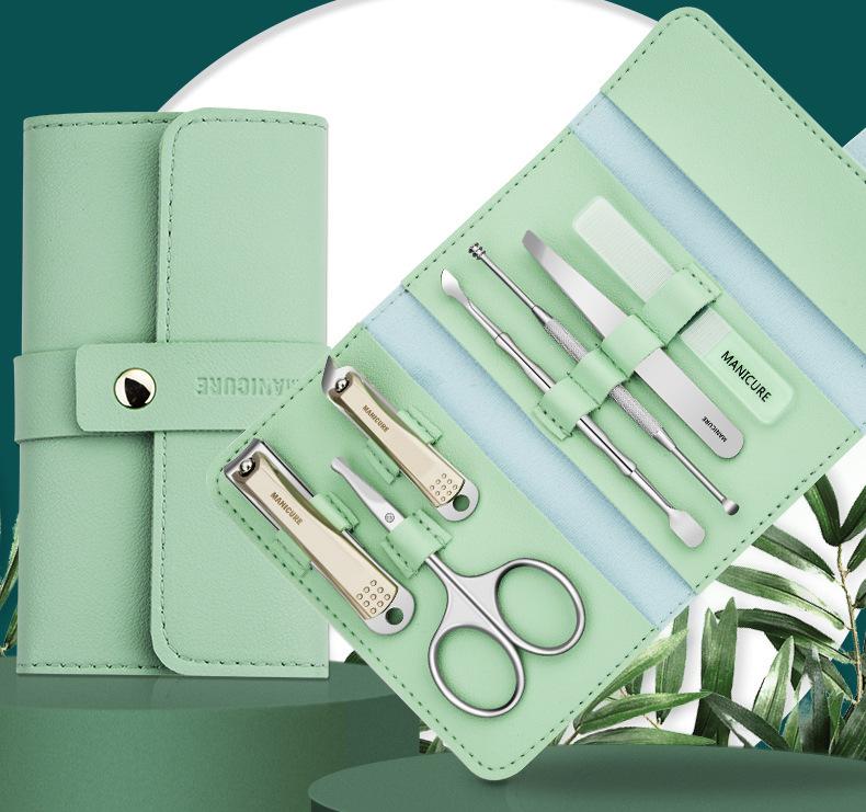Gray leather set of 7 pieces, Dark Green Light Luxury Leather Cover Nail Clipper Set of 9 Pieces, Moon Grey Li...