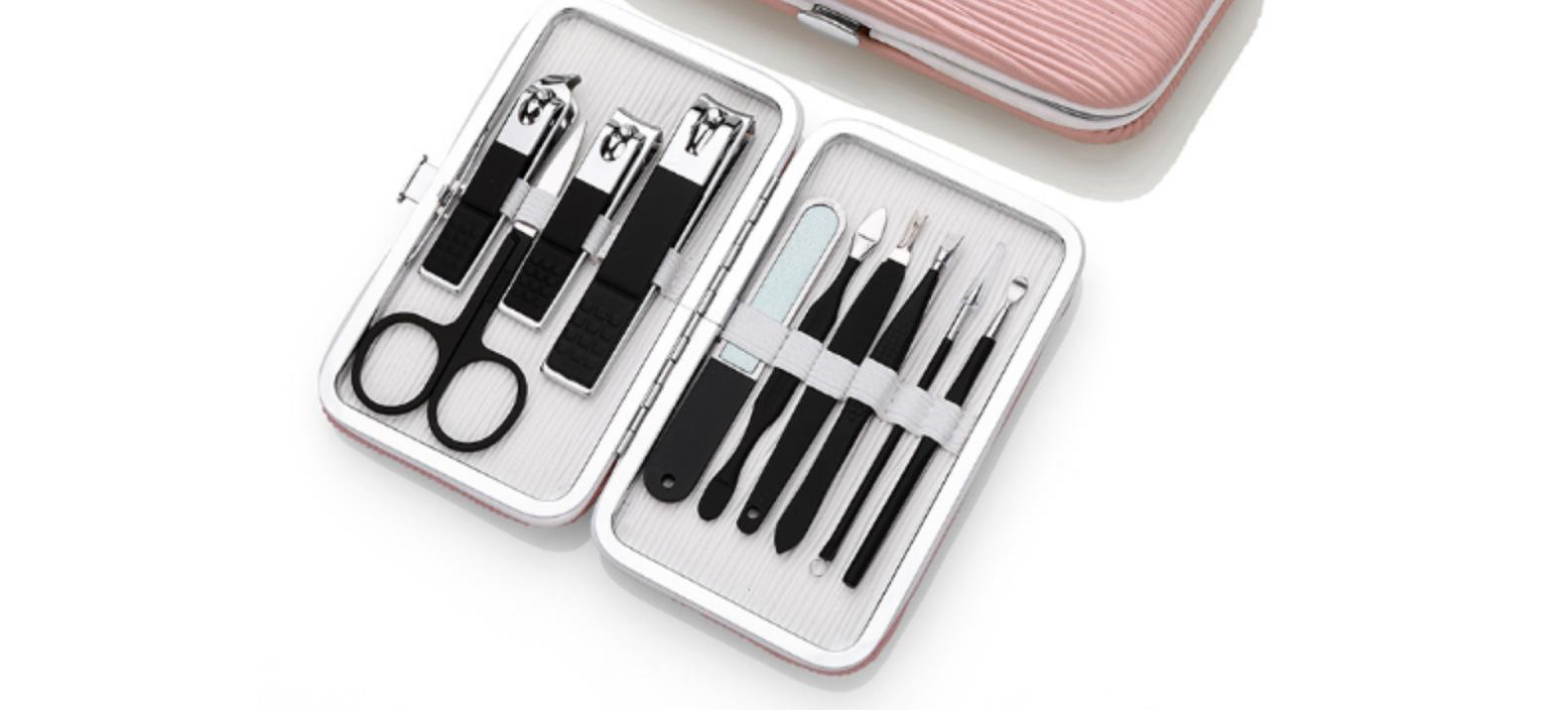 Fábrica en stock cortaúñas de goma negra, apto para manicura, manicura especial, conjunto completo de herramientas, cortaúñas para el hogar, venta al por mayor