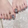 J-274 Uñas de los pies plateadas con diamantes de color azul hielo, para verano, con parches postizos, al por mayor