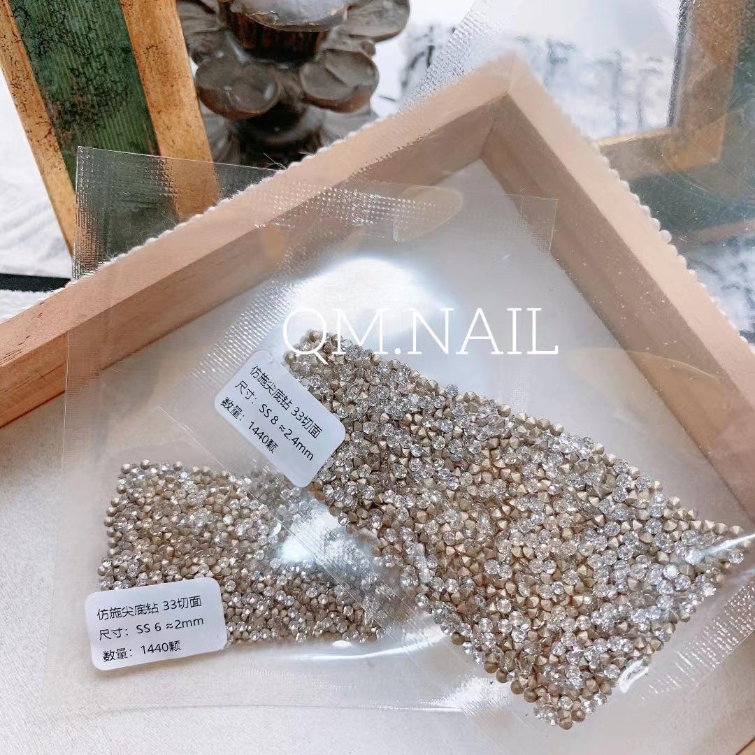 Joyería de Manicura Verde Súper Brillante Imitación Diamante Puntiagudo de 33 Facetas Montón de Diamantes DIY Venta al por Mayor 1440 Relleno de Manicura