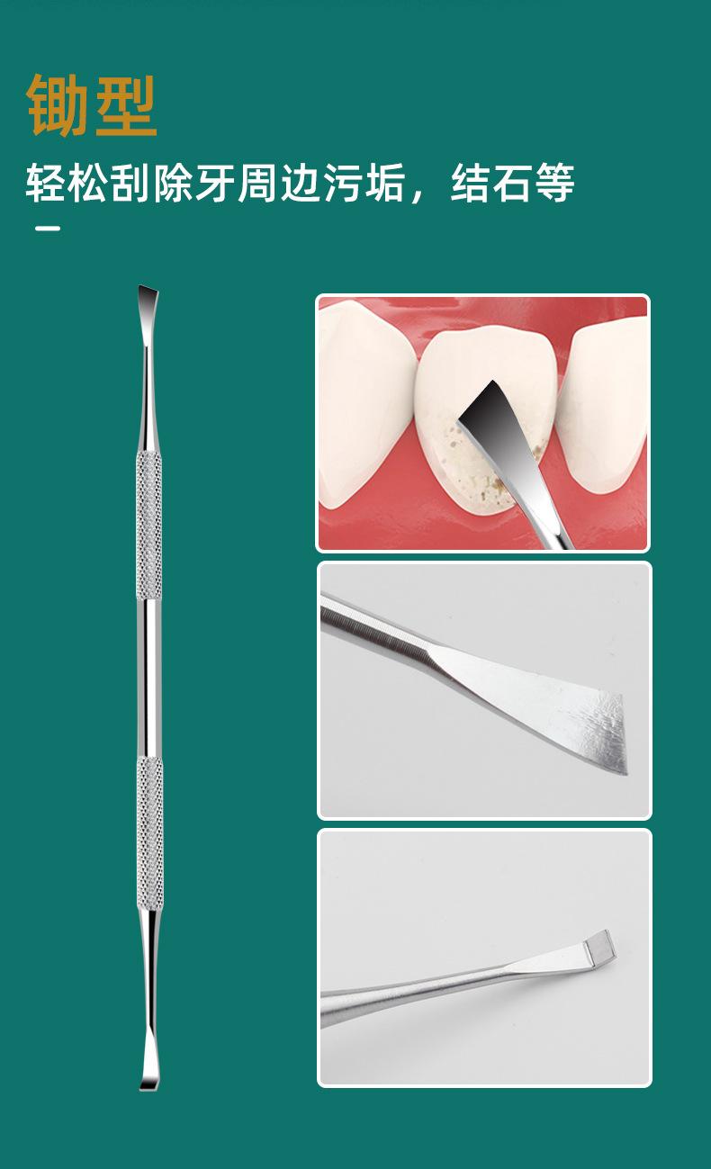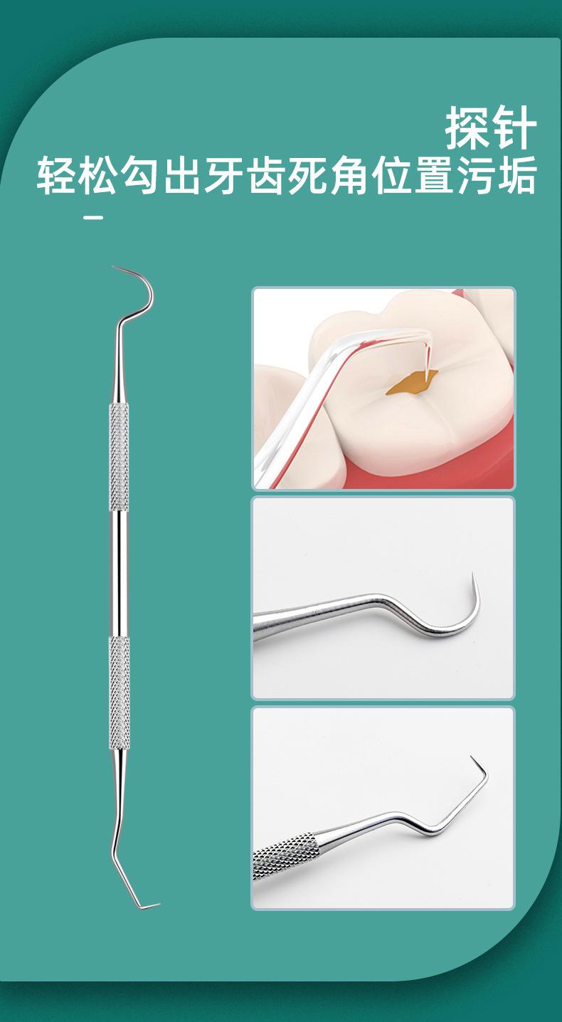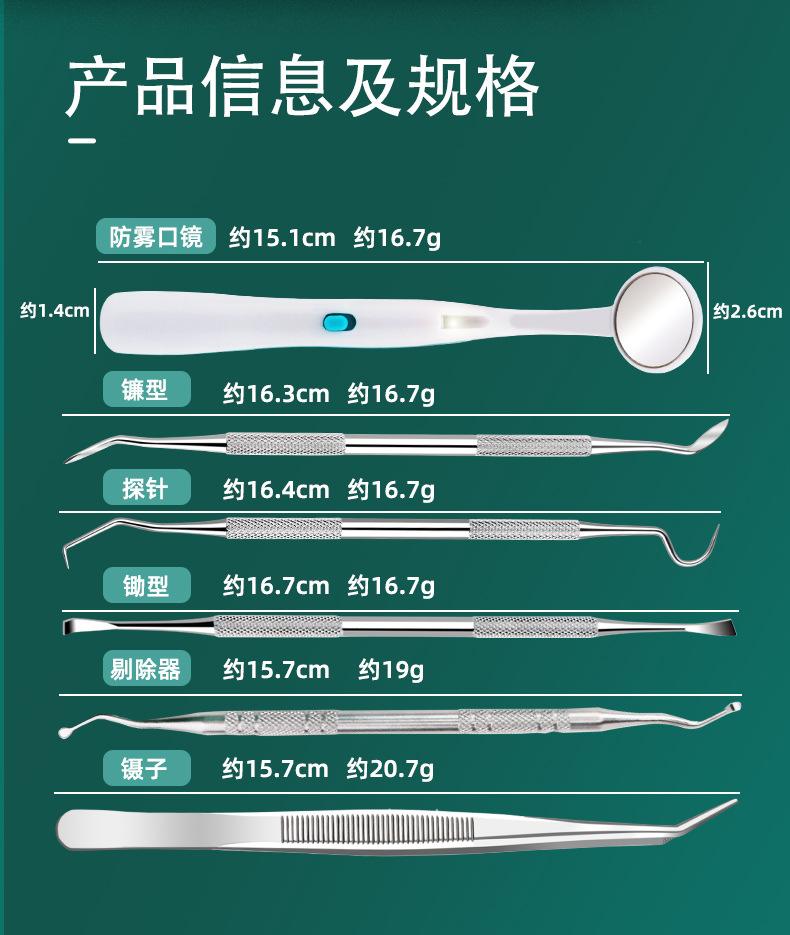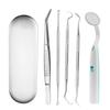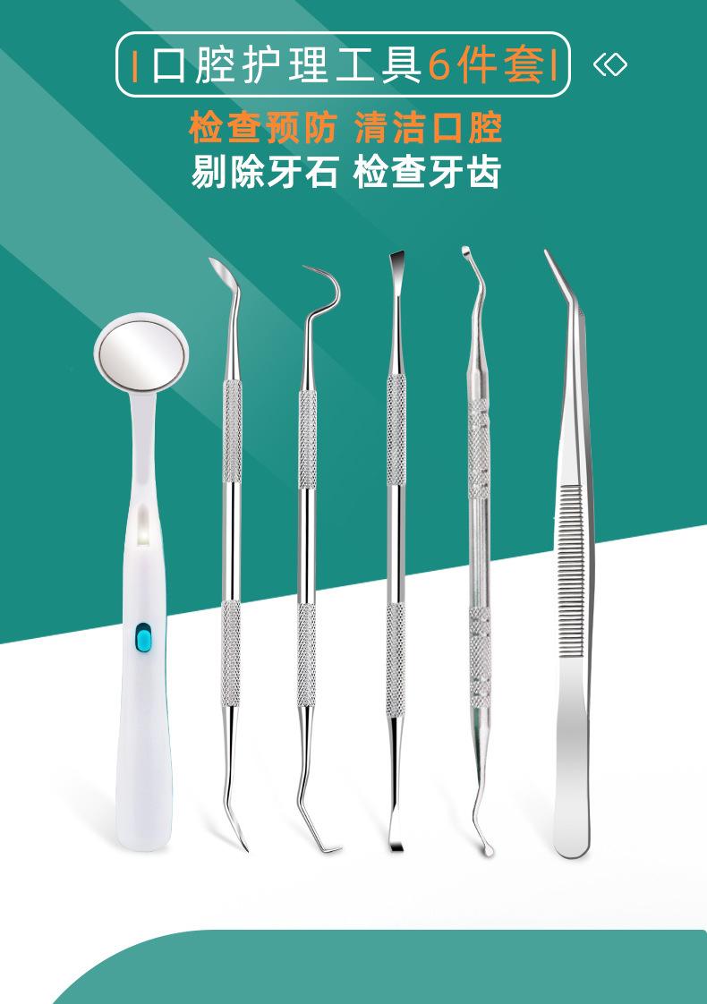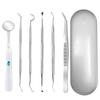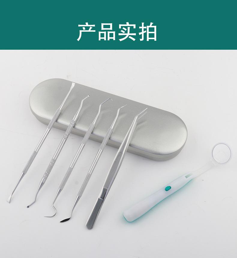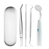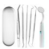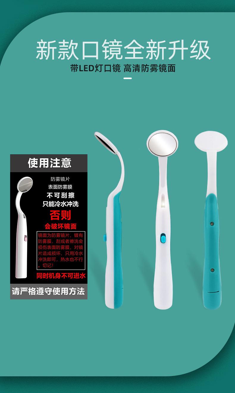 Juego de herramientas dentales de acero inoxidable con espejo bucal luminoso LED, limpiador dental de doble cabezal, herramienta de cuidado bucal
