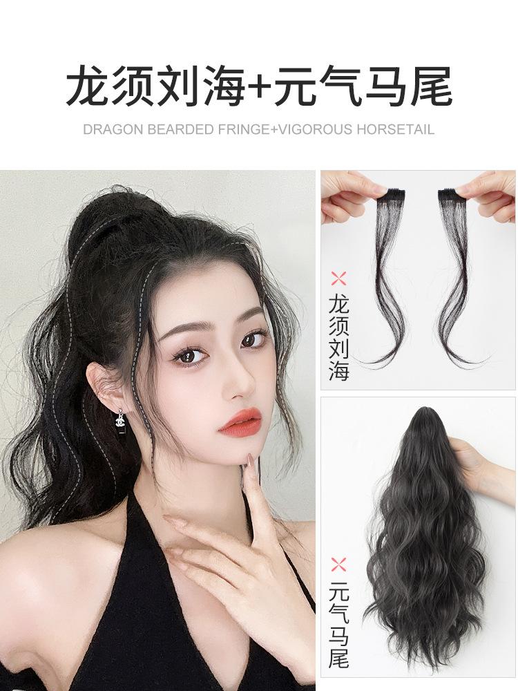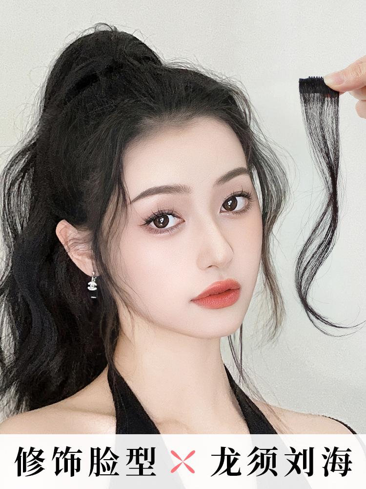 Compra Flequillo Falso con Bigotes de Dragón para Mujer, Flequillo Ligeramente Rizado a Ambos Lados, Postizo para Modificar la Forma del Rostro, Hebras de Cabello Invisibles y Realistas al por mayor en Joom.pro