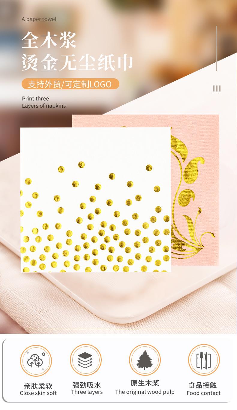 Servilletas de papel doradas sin polvo de color, cuadradas, para restaurante occidental, hotel, para la boca, para club