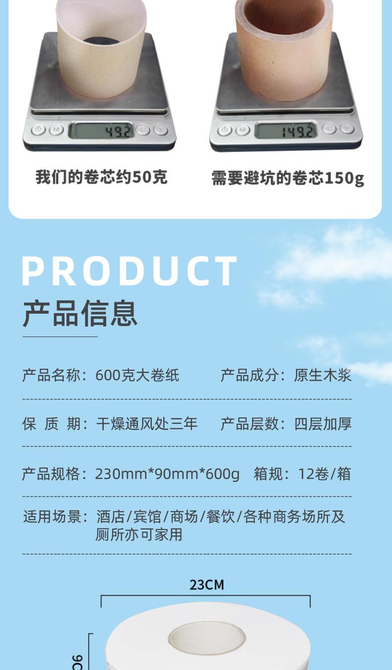 Plato grande papel 600g papel higiénico rollo de papel de empresa hotel plato grande rollo de papel toalla de papel sanitario caja entera mayoreo rollo grande de papel