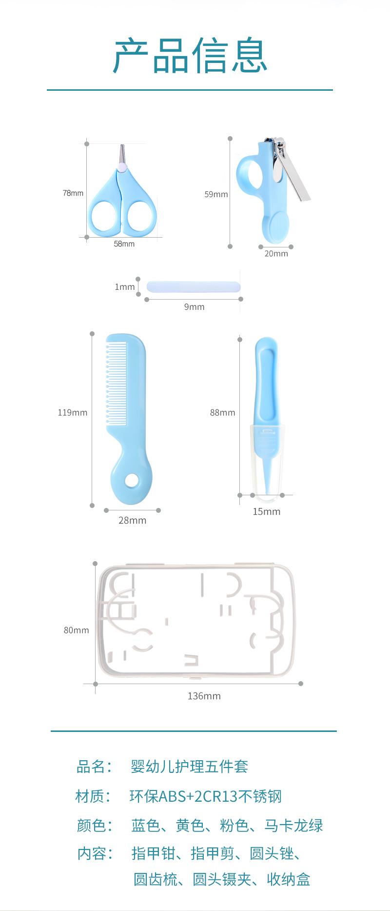 Contenido del producto: Cortauñas semicircular + cortauñas de punta corta + lima de uñas de plástico + pinza para la nariz + peine para el cabello = juego de cinco piezas