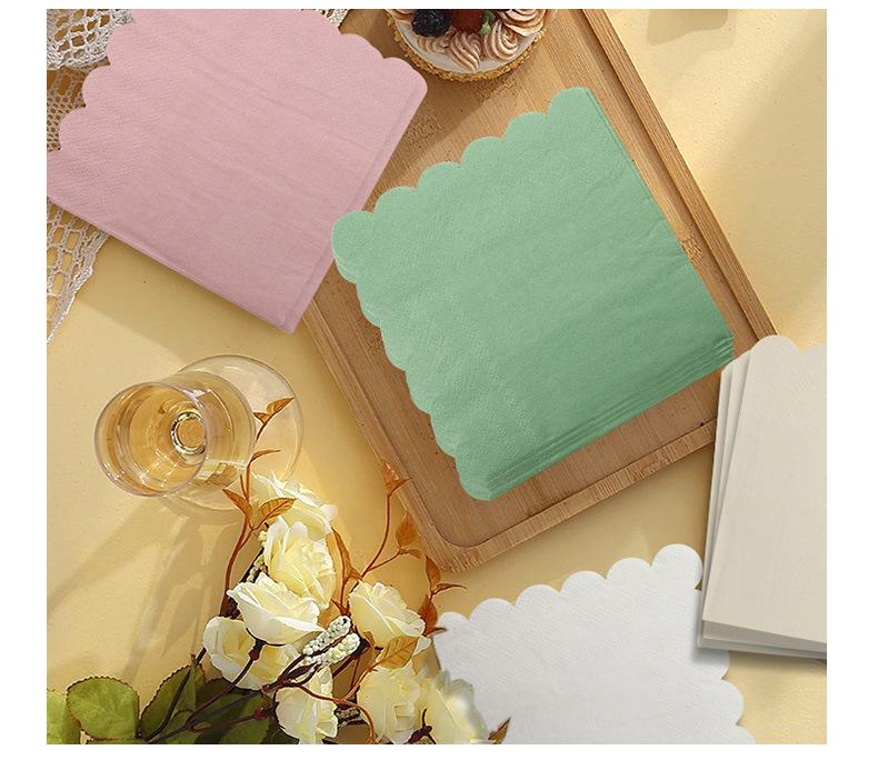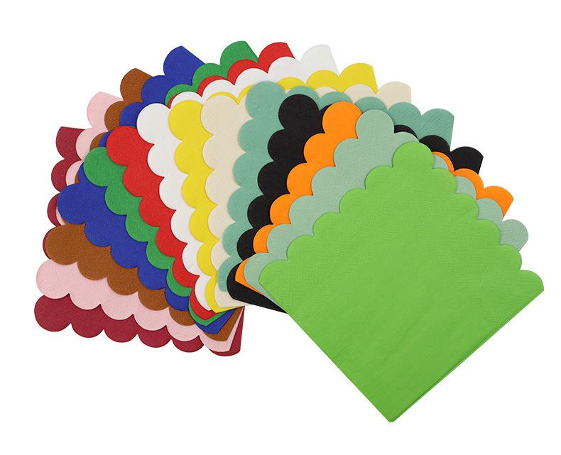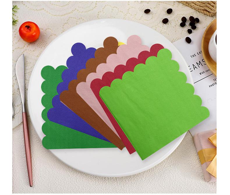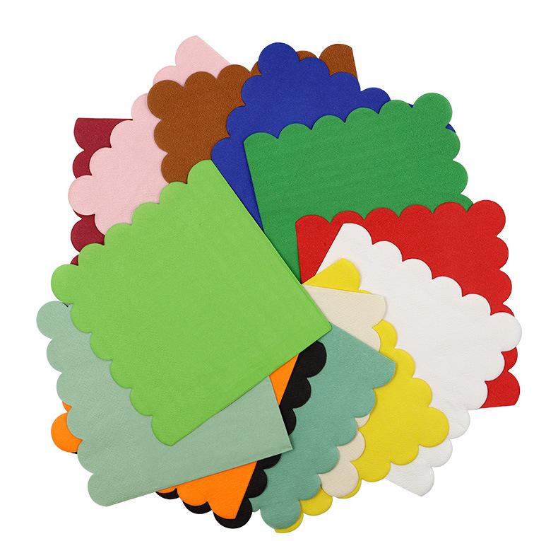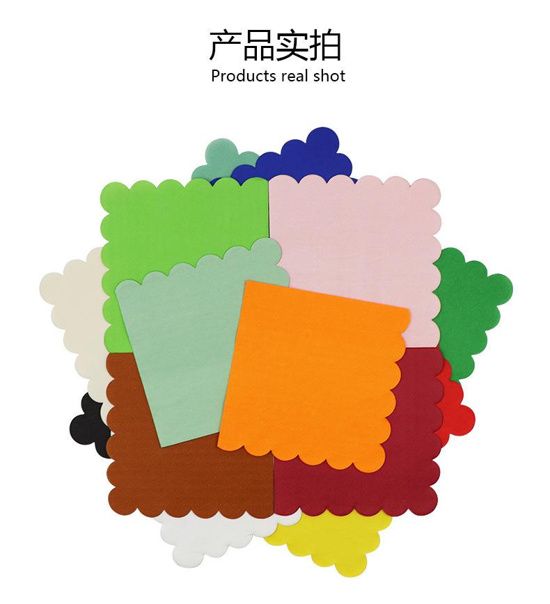 Venta al por mayor de fábrica desechable fiesta de cumpleaños 25*25 encaje color sólido tejido servilleta suministros de decoración