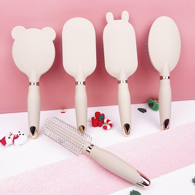 Curling comb creamy-white, Creamy-white ordinary style, Creamy-white cute ears, Creamy-white cute bear, Creamy-white Oval