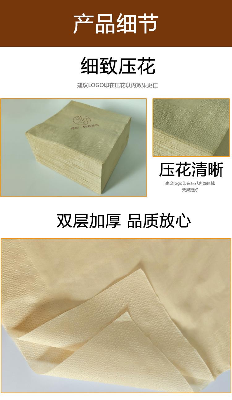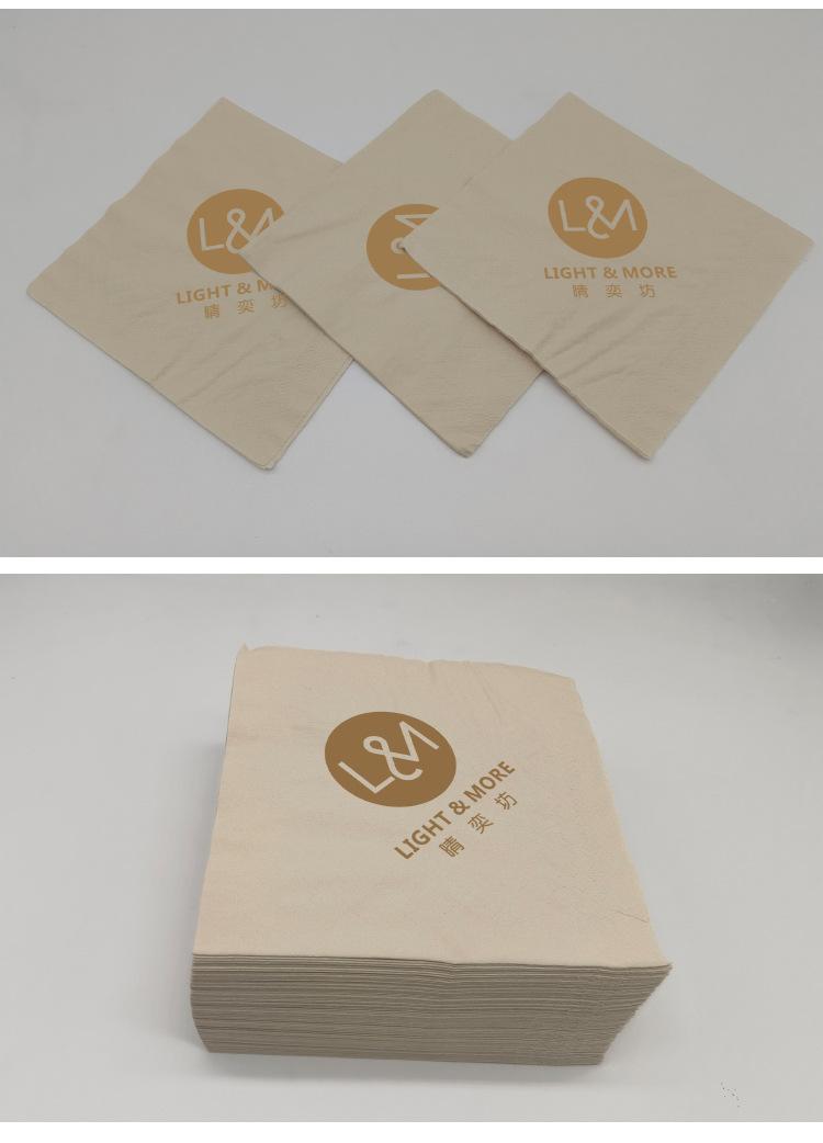 Servilletas desechables de doble capa de pulpa de madera nativa, servilletas de papel cuadradas, pañuelos publicitarios, logotipo imprimible, caja completa