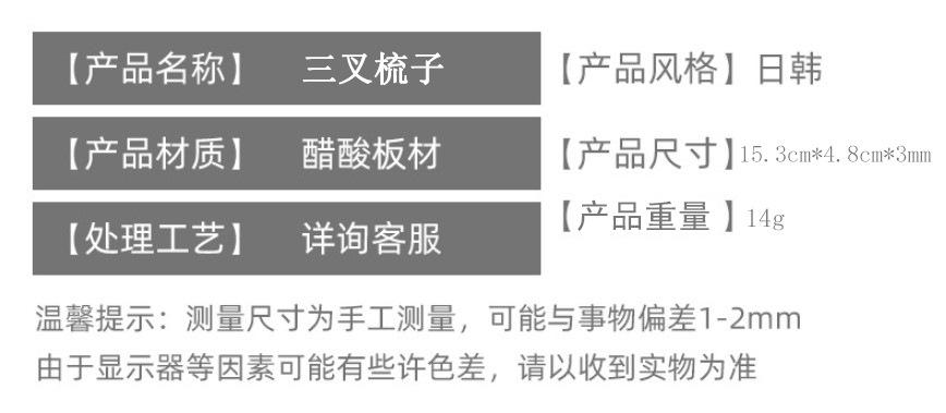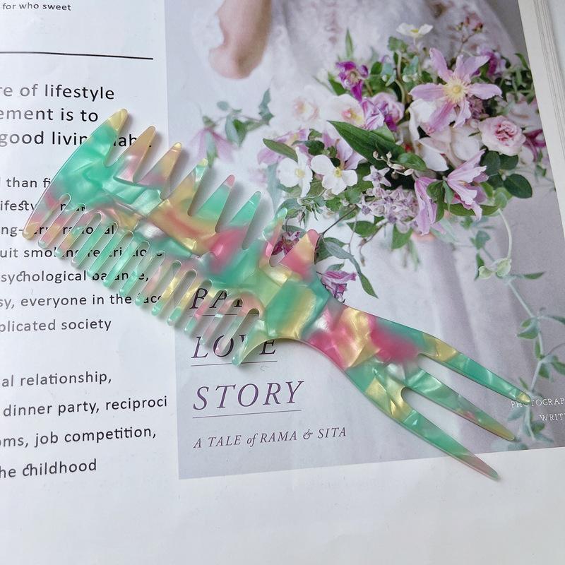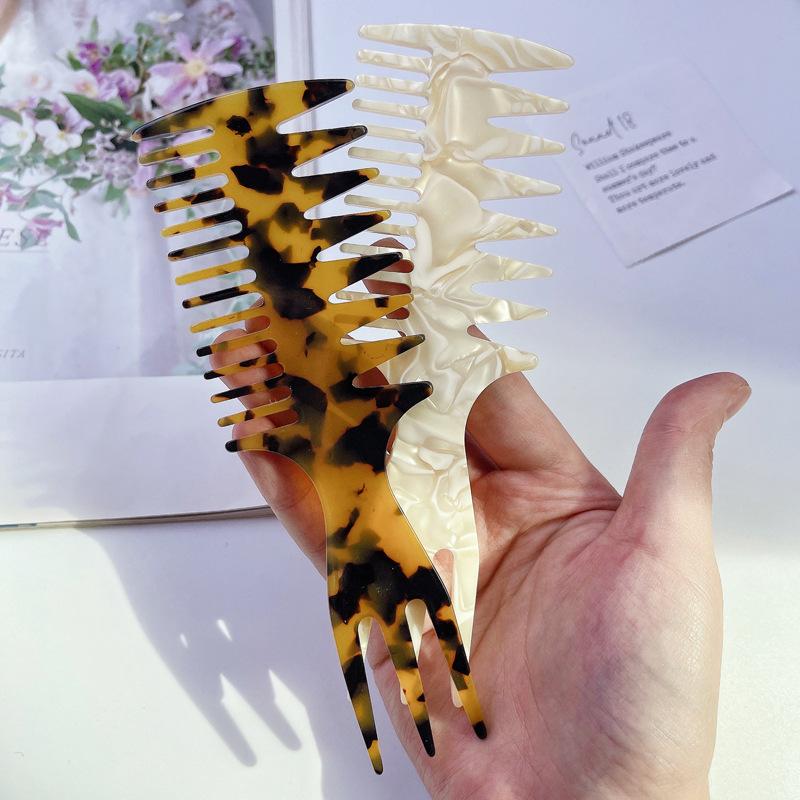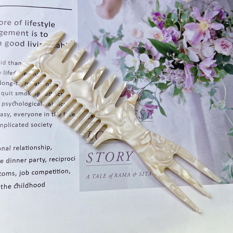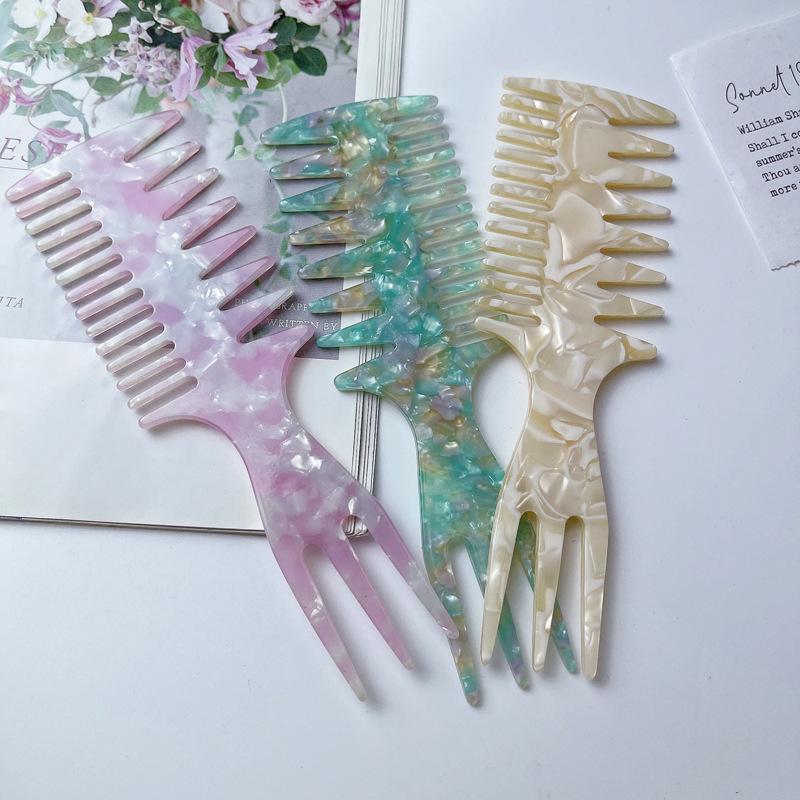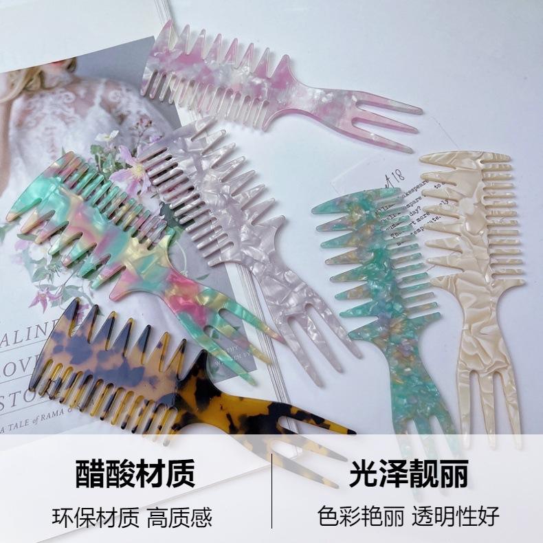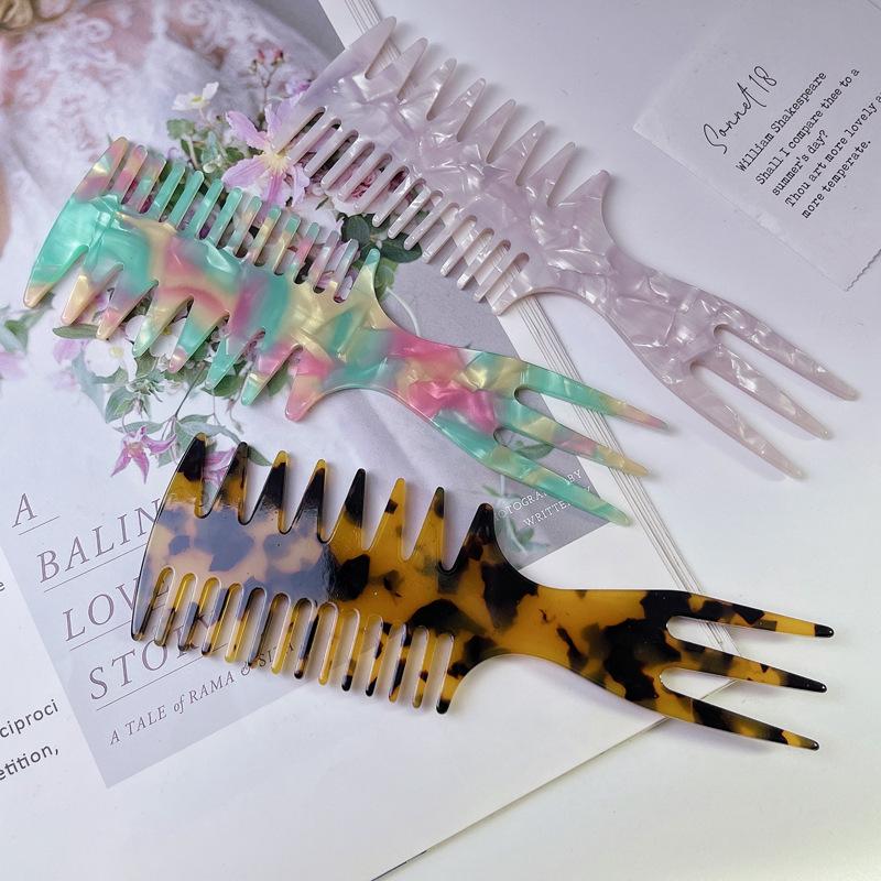 Peine de pelo de espiga transfronterizo forma retro peine de acetato de tres púas textura diente grande peine tres en uno venta al por mayor