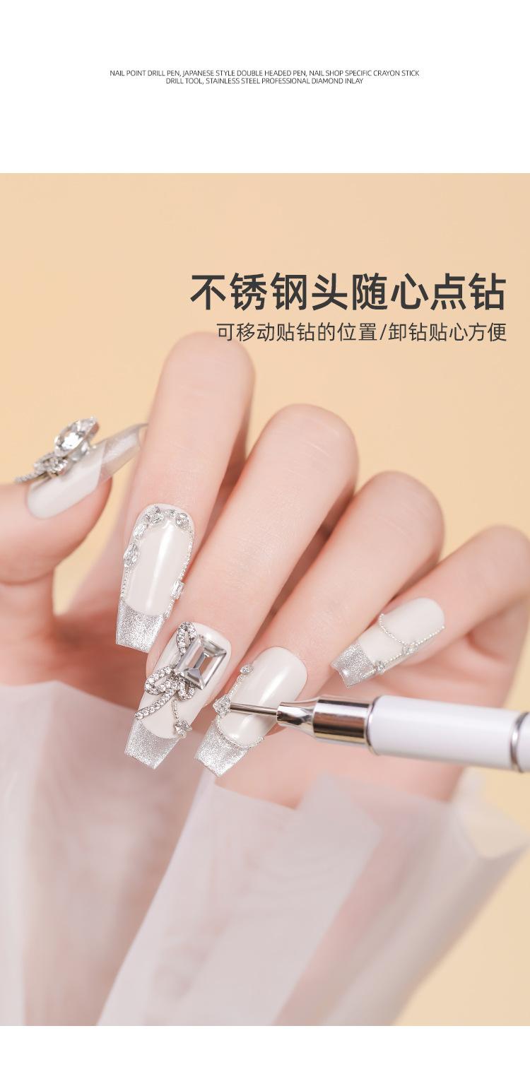 Taladro de punta para decoración de uñas, taladro de descarga, bolígrafo de doble punta, crayón especial para tienda de uñas, herramienta de taladro adhesivo, clip de taladro, punta de diamante de imitación, taladro adhesivo