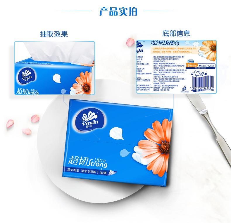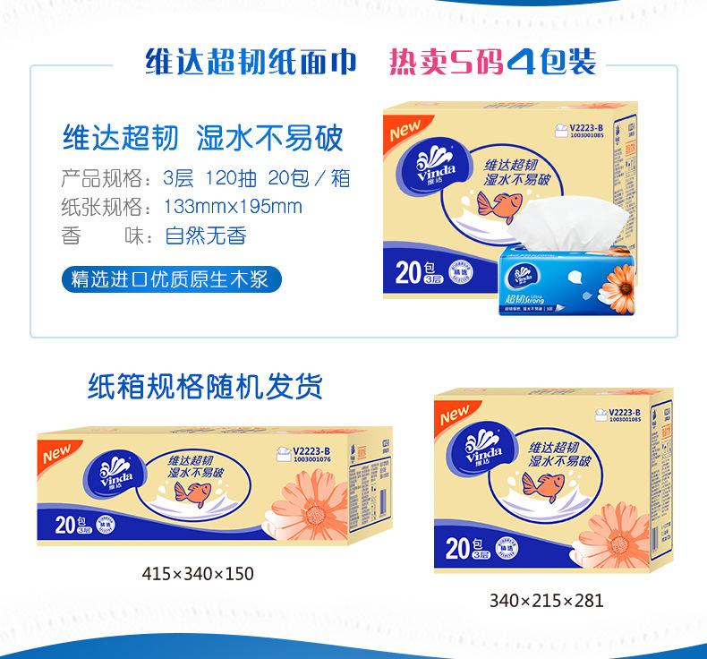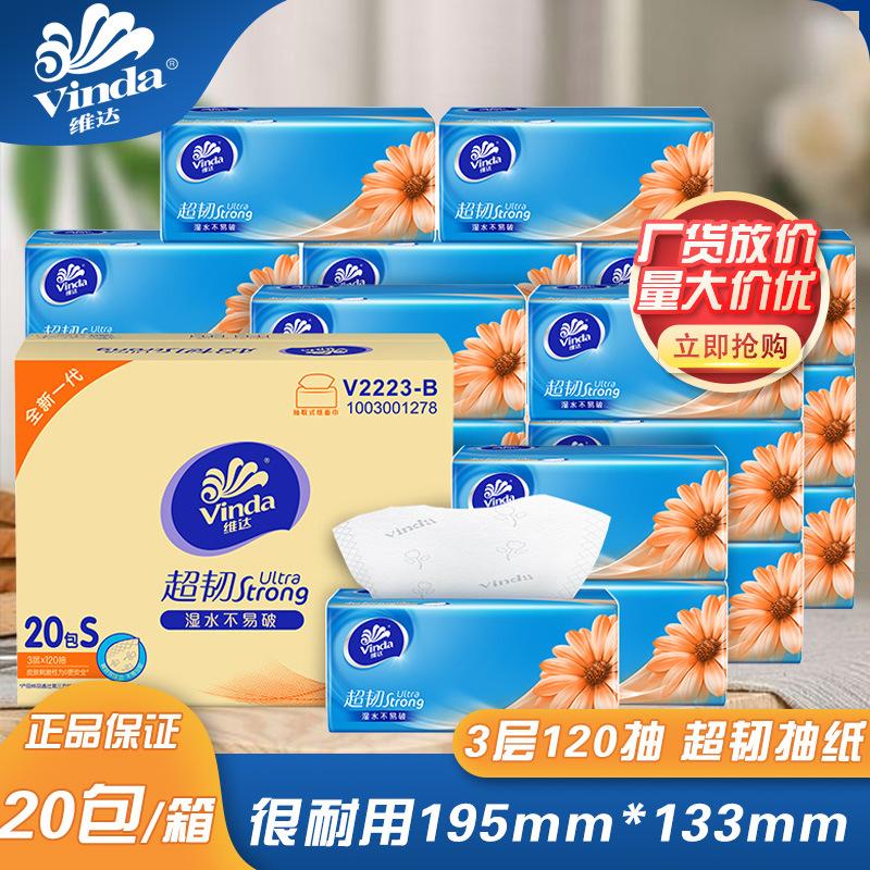 Papel Tisú Vinda 3 Capas 120 Hojas 20 Paquetes V2223 Toalla de Mano Sanitaria Pañuelo Facial Servilleta Humedecible Venta al Mayoreo