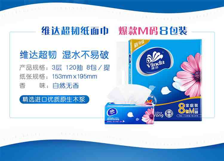 Vida tissue pañuelo super resistente 3 capas 120 hojas 8 paquetes tamaño M un paquete papel higiénico asequible servilleta mayoreo