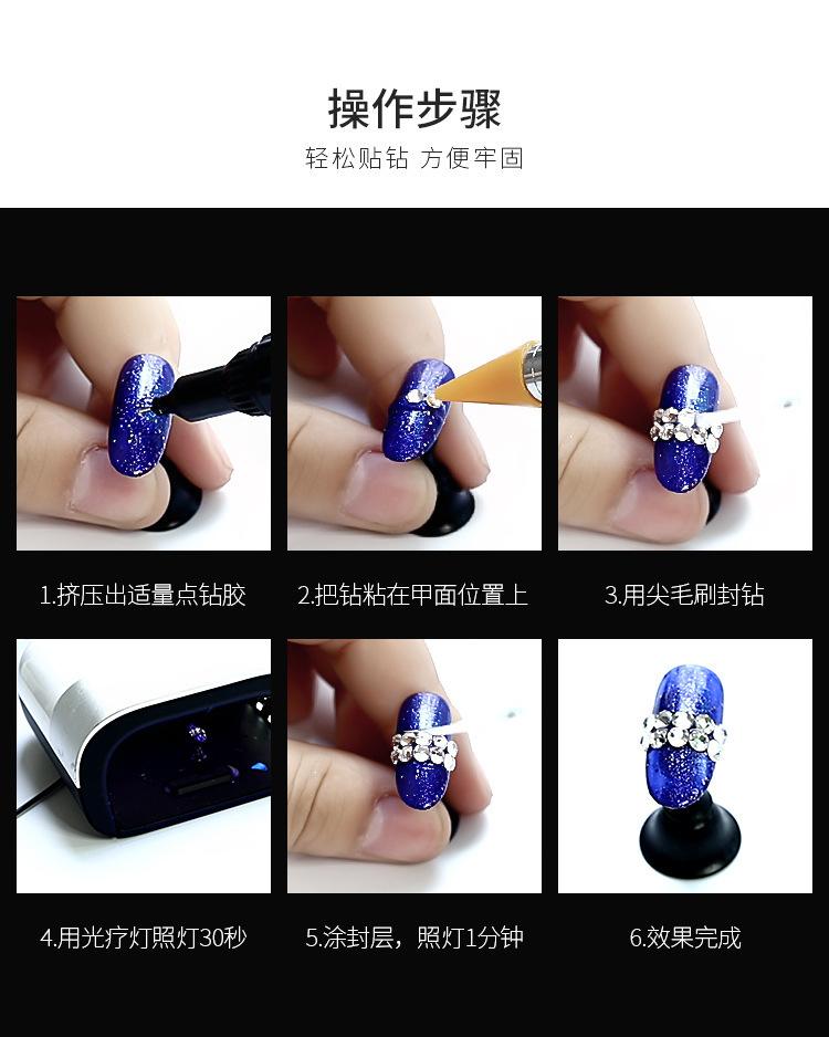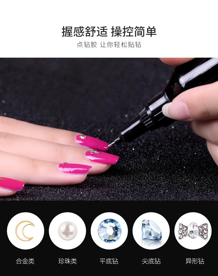 Arte de uñas pegamento de diamante fuerte y pegajoso bolígrafo de calafateo súper fuerte punta de cabeza de alfiler pegamento de diamante lavado libre pegamento de diamante pegajoso 10ML espesante venta al por mayor