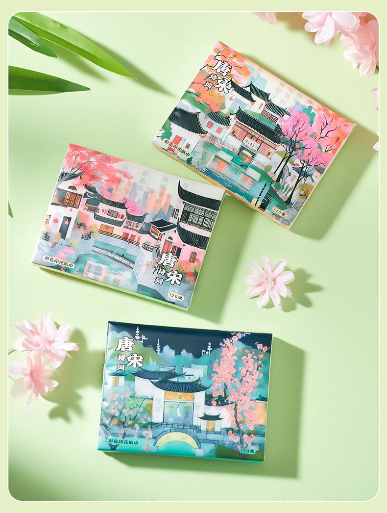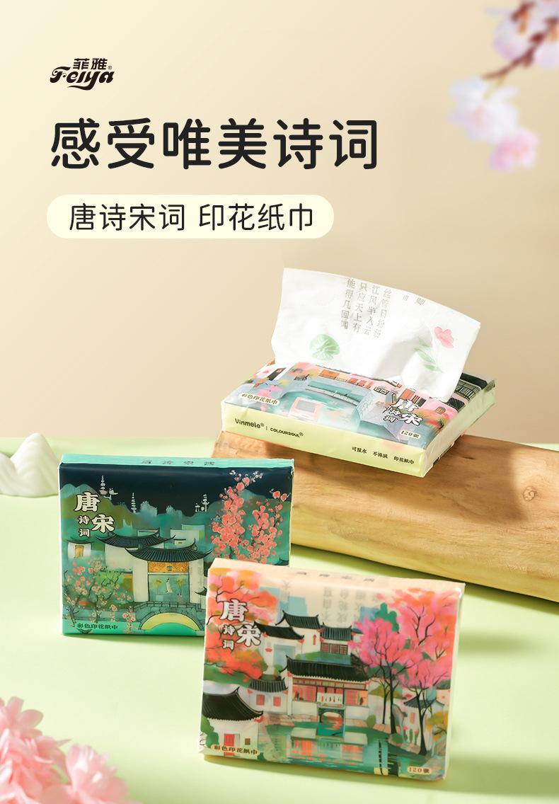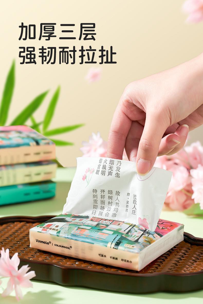Toalla de papel impresa con poesía Tang y poesía Song, pañuelo portátil para niños, bolsa pequeña, fábrica de papel, venta al por mayor, pañuelo de papel para estudiantes