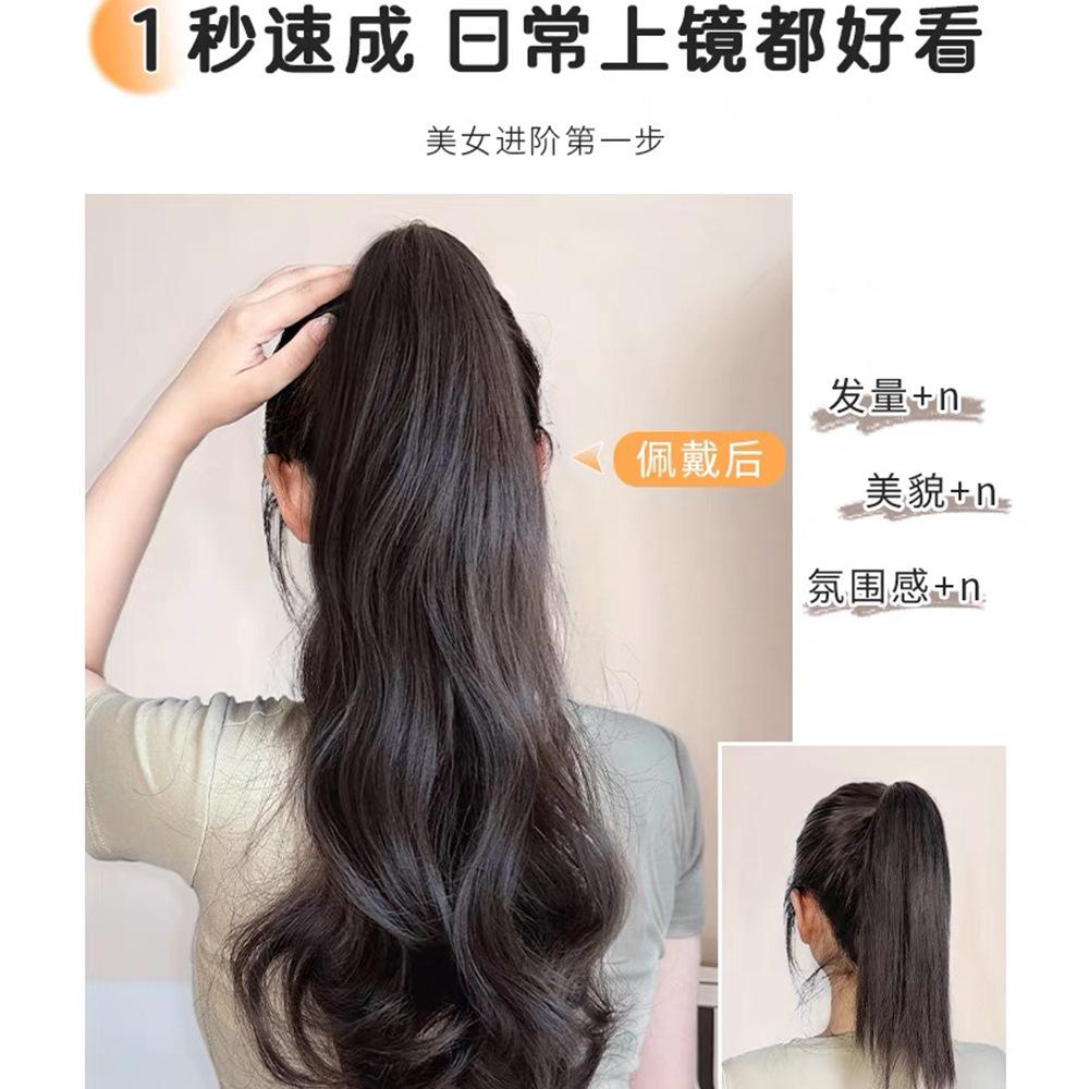 Compra Peluca de cola de caballo con clip para cabello femenino, peluca de cola de caballo alta con ondas grandes, natural, esponjosa, larga, volumen, temperamento, cola de caballo más joven al por mayor en Joom.pro