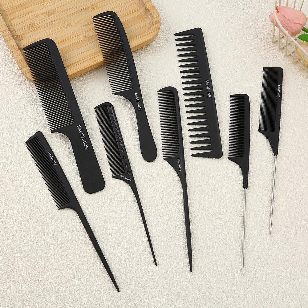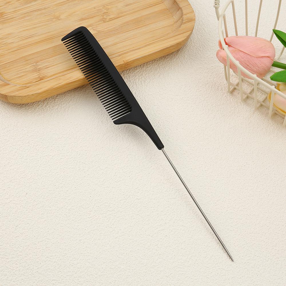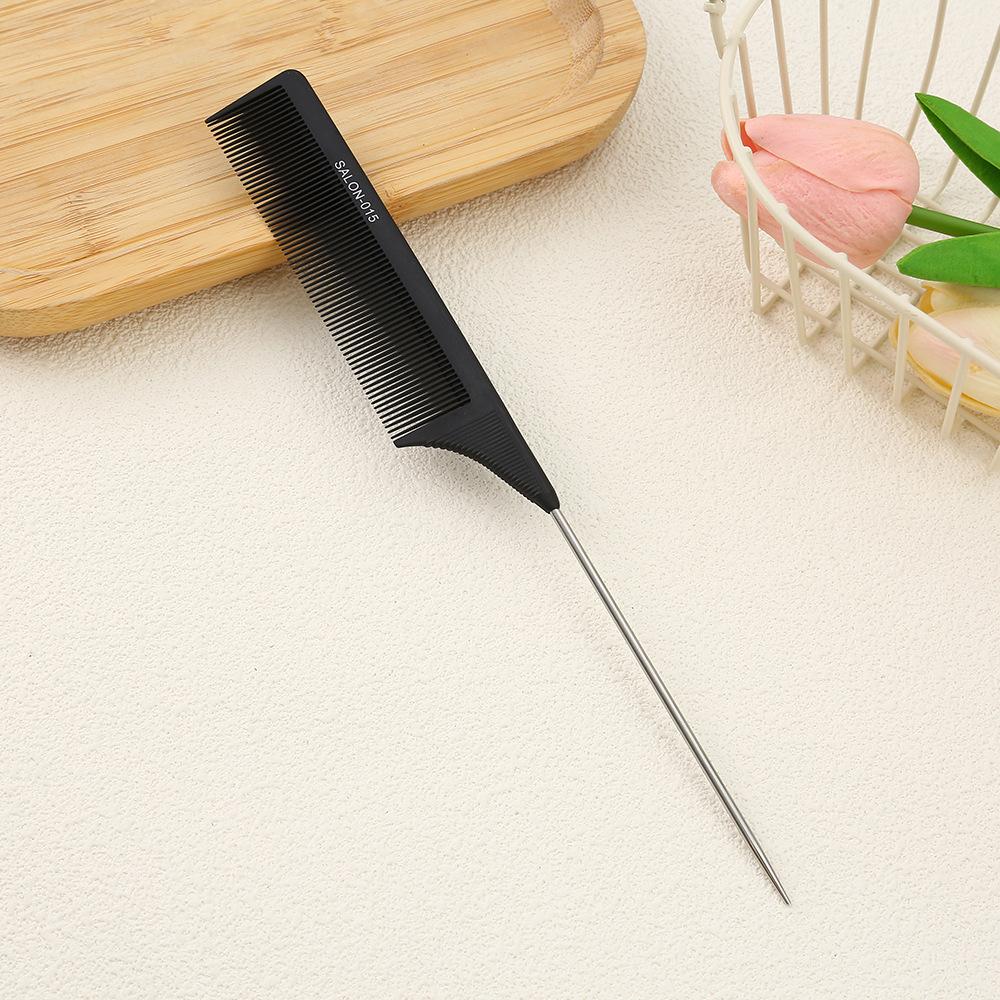 Peine de cola puntiaguda negra para peluquería, peine de cola puntiaguda de fibra de carbono, aguja de acero para estudio, aguja dividida, dientes densos, suministros de peluquería, peine para recogido.